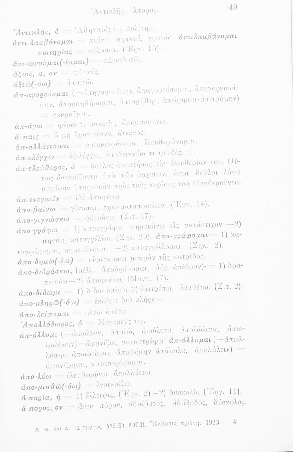 Συγγραφέας: Λυσίας, Δημήτριος-Βασίλειος Τσιρίμπας, Αντώνιος Τσιρίμπας (σχόλια)