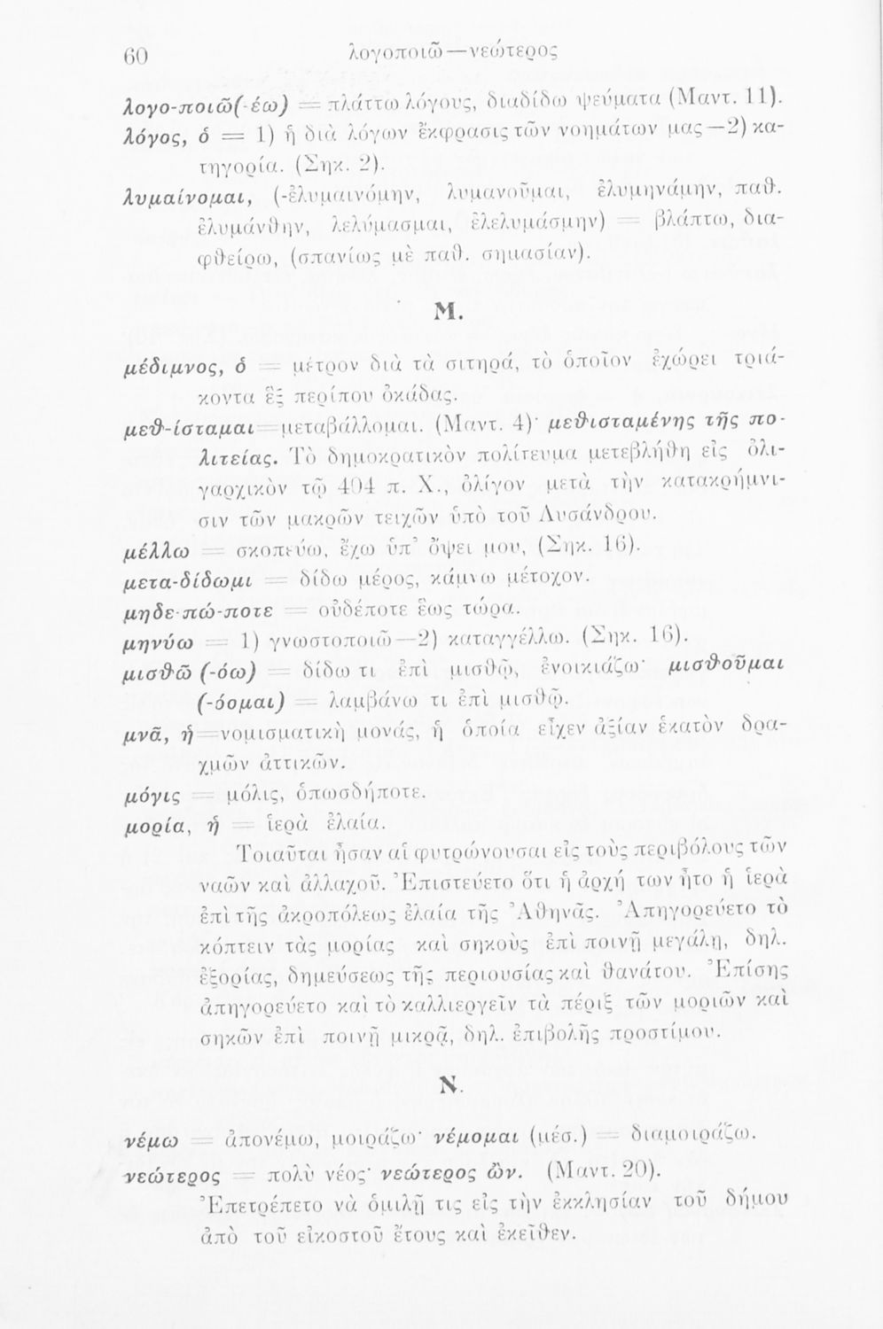 Σχολικό εγχειρίδιο Αρχαίων Ελληνικών Γ΄ Γυμνασίου που περιλαμβάνει τους Λόγους του Λυσία Περί του σηκού απολογία, Υπέρ Μαντιθέου, Κατά Εργοκλέους, και Κατά των σιτοπωλών, εισαγωγή στη ζωή, το έργο και του Λόγους του και λεξιλόγιο.