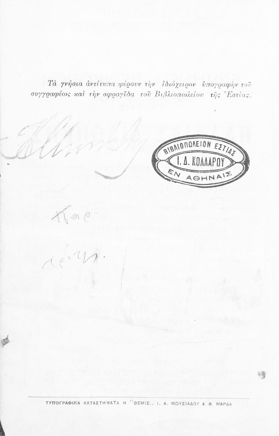 Εντοπισμός πρωτοτύπου: Ελληνικό Λογοτεχνικό και Ιστορικό Αρχείο Κωδικός βιβλιοθήκης: 1933 ΜΗΝ |