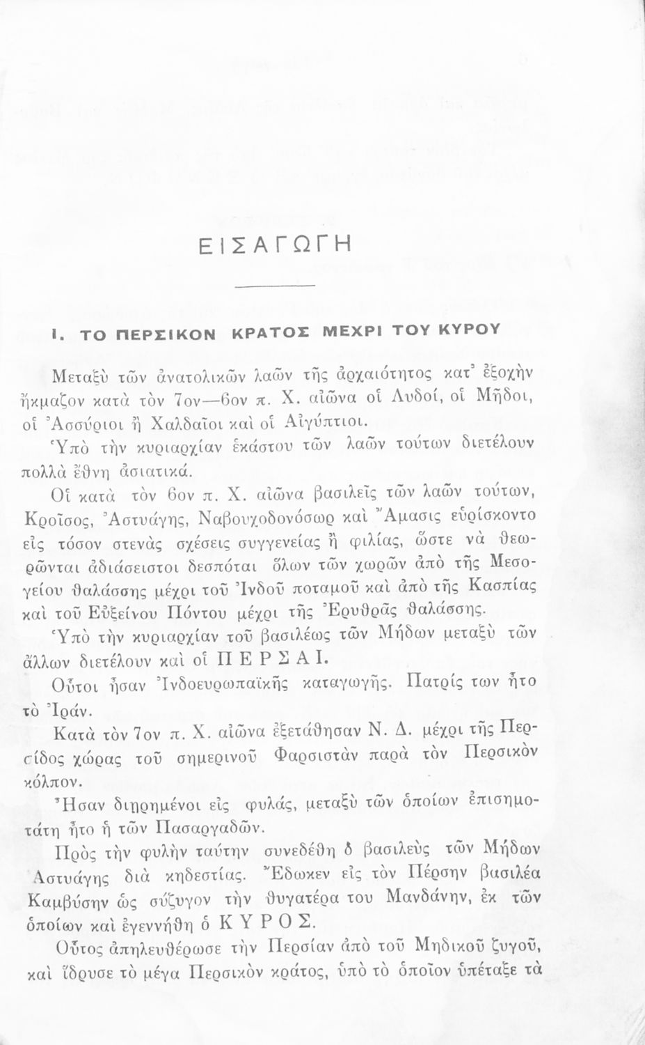 LDR 01382 2200217 4500 035 ## _a02-01453 040 ## _aΕλληνικό Λογοτεχνικό και Ιστορικό Αρχείο 041 ## _ael 100 ## _aΞενοφών _aΔ. Τσιρίμπας (σχόλια) 110 ## _a1933 ΞΕΝ 245 0# _aΕκλογαί εκ της Κύρου Παιδείας του Ξενοφώντος: εγκεκριμένον διά την Γ΄ τάξιν των Εξαταξίων Γυμνασίων 250 ## _a1η Έκδοση 260 ## _aΑθήνα _bΙωάννης Δ. Κολλάρος και ΣΙΑ ΑΕ _c1933 300 ## _a135 _bΕικόνες (ασπρόμαυρες), Σκίτσα (ασπρόμαυρα), Χάρτες (ασπρόμαυροι) 520 ## _aΣχολικό εγχειρίδιο Αρχαίων Ελληνικών Γ΄ Γυμνασίου που περιλαμβάνει αποσπάσματα από το έργο του Ξενοφώντα Κύρου Ανάβασις, εισαγωγικά σχόλια για τη ζωή και το έργο του, ερμηνευτικές και γραμματικές παρατηρήσεις. 521 ## _aΓ' Γυμνασίου 522 ## _aΕλλάδα 546 ## _aΚαθαρεύουσα 563 ## _aΣκληρό Εξώφυλλο 583 ## _a42433/4-8-1933 650 #4 _aΗγεμόνας _aΚύρος ο Β΄ _aΠέρσες