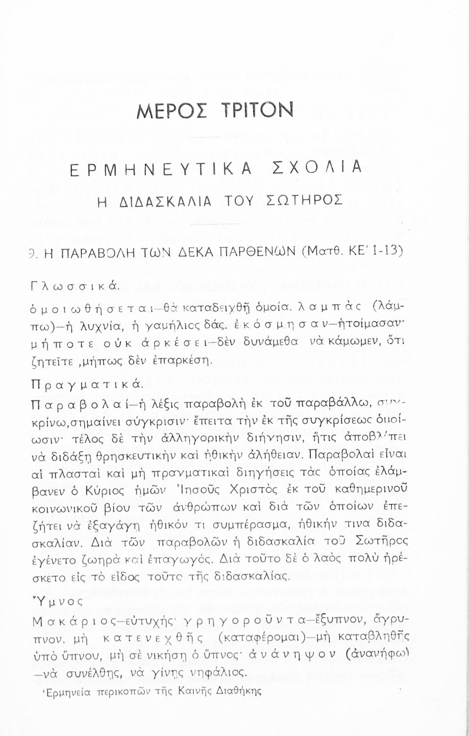 Σχολικό εγχειρίδιο Θρησκευτικών για την Γ΄ Γυμνασίου, τα Διδασκαλεία και τα Ανώτερα Παρθεναγωγεία που περιέχει περικοπές από τα βιβλία της Καινής Διαθήκης και ερμηνευτικές σημειώσεις.