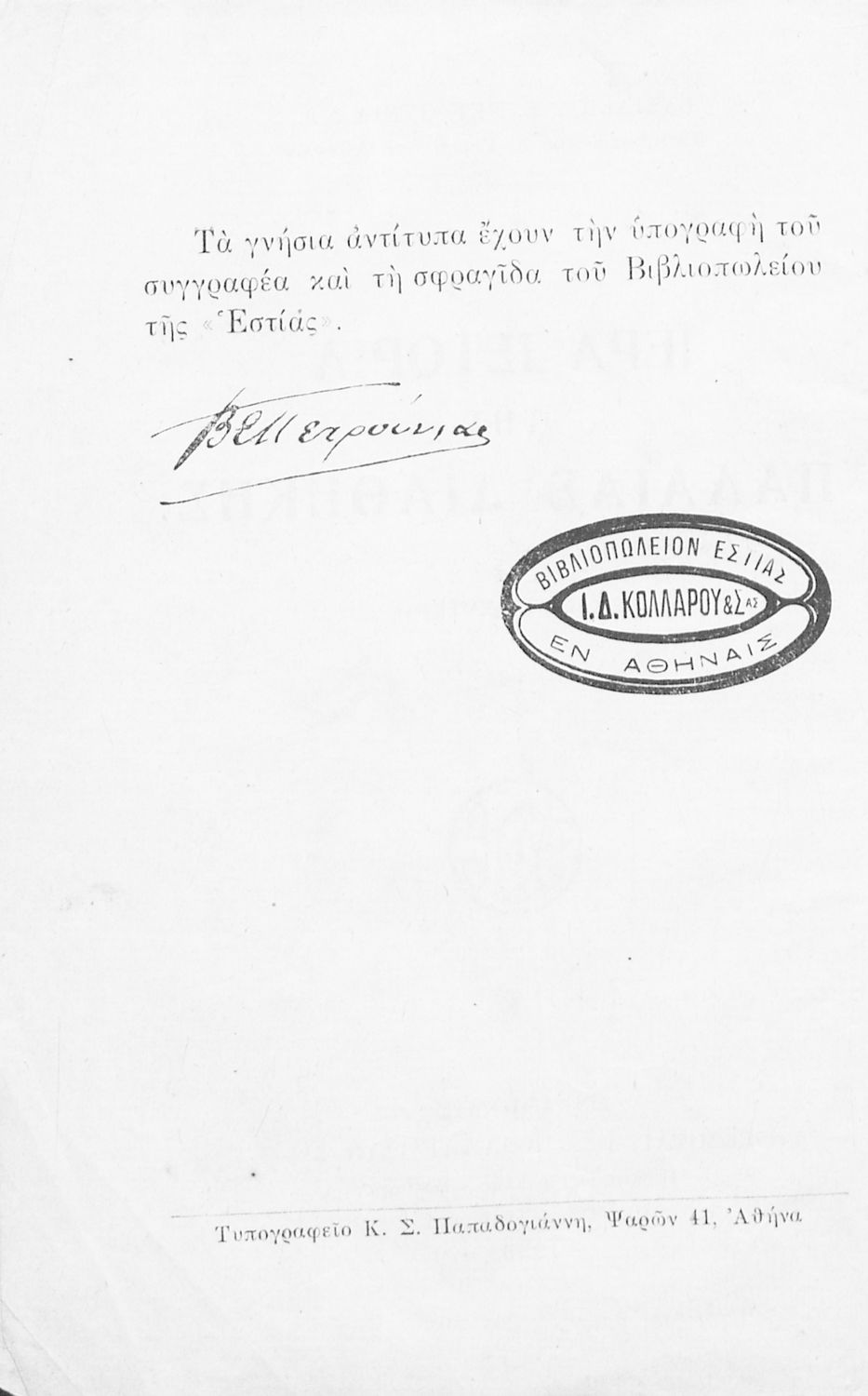 Εντοπισμός πρωτοτύπου: Ελληνικό Λογοτεχνικό και Ιστορικό Αρχείο Κωδικός βιβλιοθήκης: 1933 ΠΕΤ |