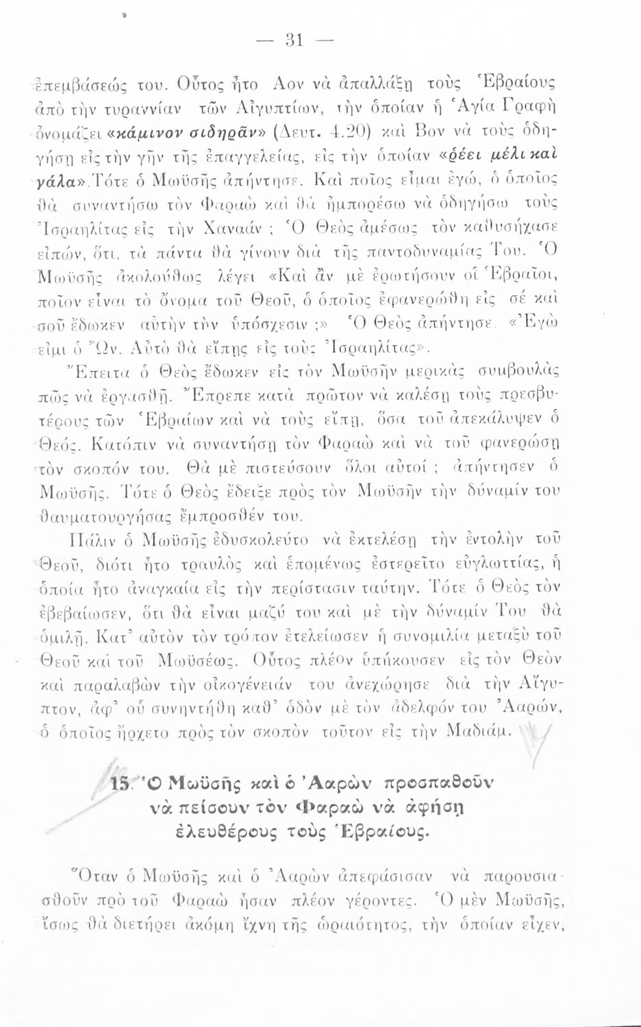 Σχολικό εγχειρίδιο Θρησκευτικών Α΄ Γυμνασίου που συνιστά μία εξιστόρηση της Παλαιάς Διαθήκης από τη δημιουργία του κόσμου ως την υποταγή των Εβραίων στους Ρωμαίους. Περιέχει και στοιχεία γεωγραφίας της Παλαιστίνης.