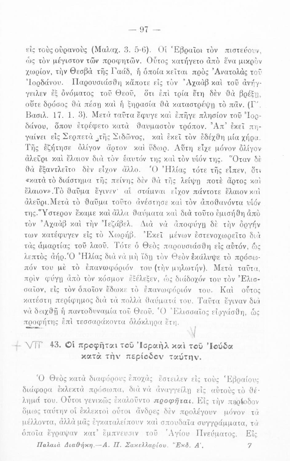 Σχολικό εγχειρίδιο Θρησκευτικών Α΄ Γυμνασίου που συνιστά μία εξιστόρηση της Παλαιάς Διαθήκης από τη δημιουργία του κόσμου ως την υποταγή των Εβραίων στους Ρωμαίους. Περιέχει και στοιχεία γεωγραφίας της Παλαιστίνης.