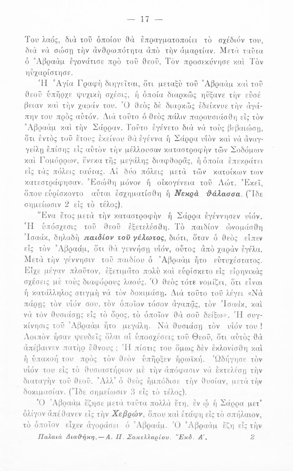 Σχολικό εγχειρίδιο Θρησκευτικών Α΄ Γυμνασίου που συνιστά μία εξιστόρηση της Παλαιάς Διαθήκης από τη δημιουργία του κόσμου ως την υποταγή των Εβραίων στους Ρωμαίους. Περιέχει και στοιχεία γεωγραφίας της Παλαιστίνης.