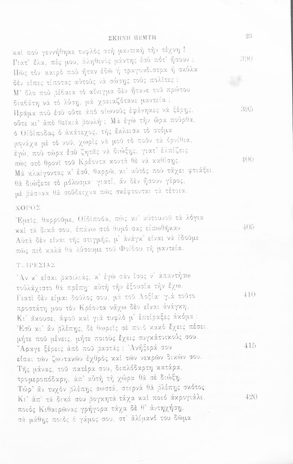 Σοφοκλέους Οιδίπους Τύραννος, για την ΣΤ΄ τάξη των εξατάξιων Γυμνασίων