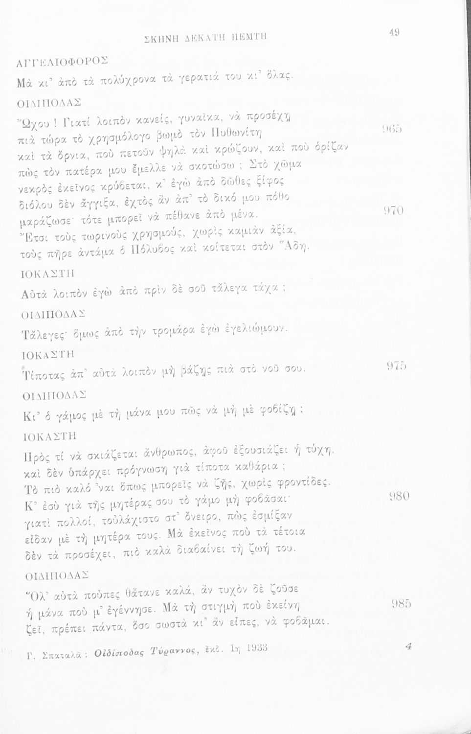 Σοφοκλέους Οιδίπους Τύραννος, για την ΣΤ΄ τάξη των εξατάξιων Γυμνασίων