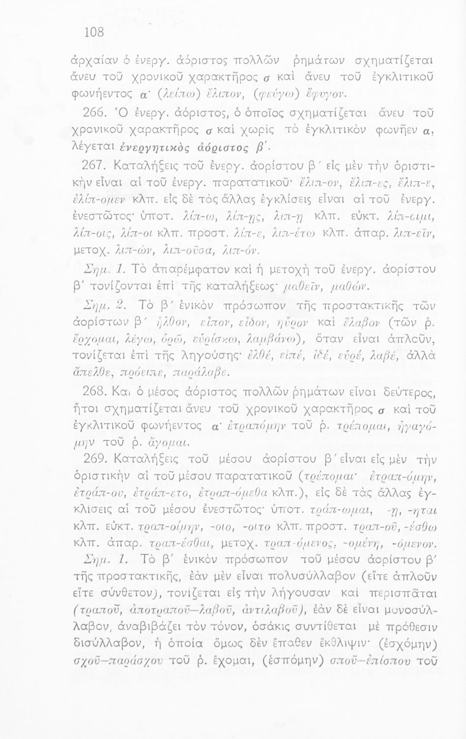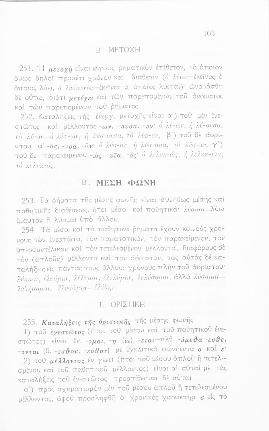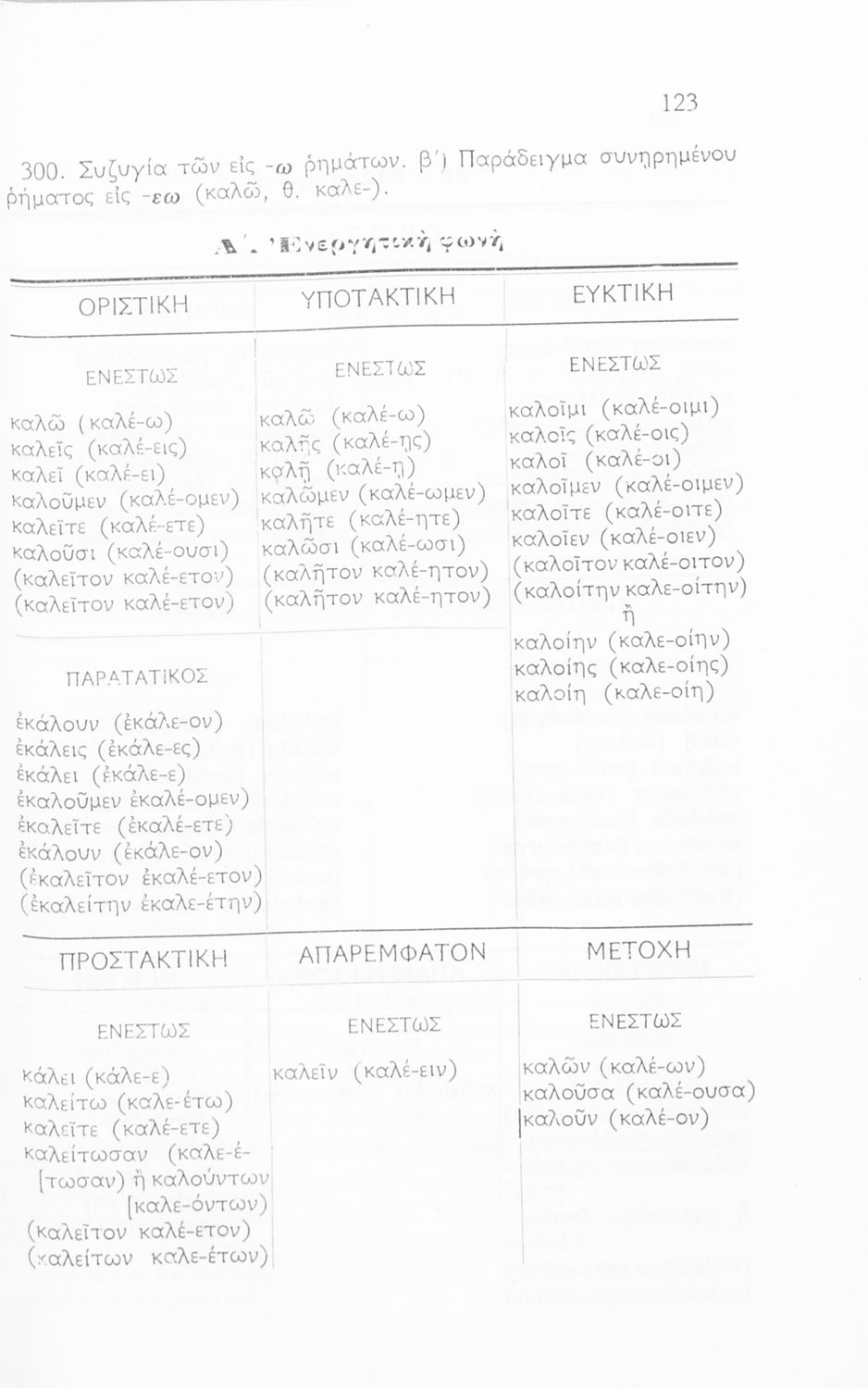 Σχολικό εγχειρίδιο Αρχαίων Ελληνικών Γυμνασίου που περιλαμβάνει τη γραμματική της αρχαίας ελληνικής και είναι χωρισμένο σε φθογγολογικό και τυπολογικό μέρος Περιέχει και κατάλογο ανωμάλων ρημάτων, ασκήσεις και