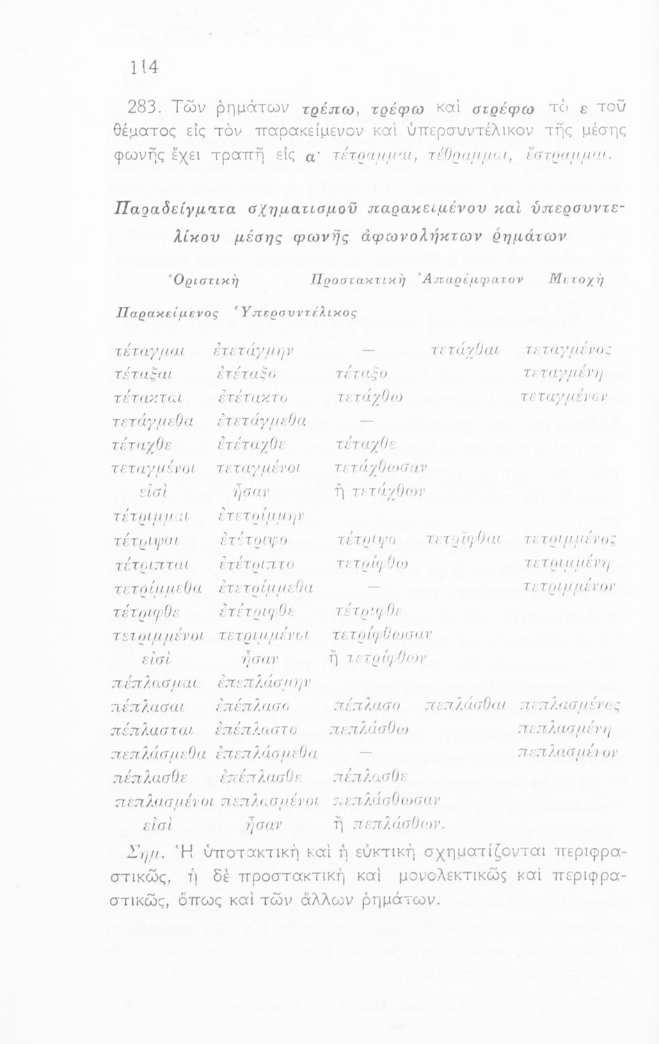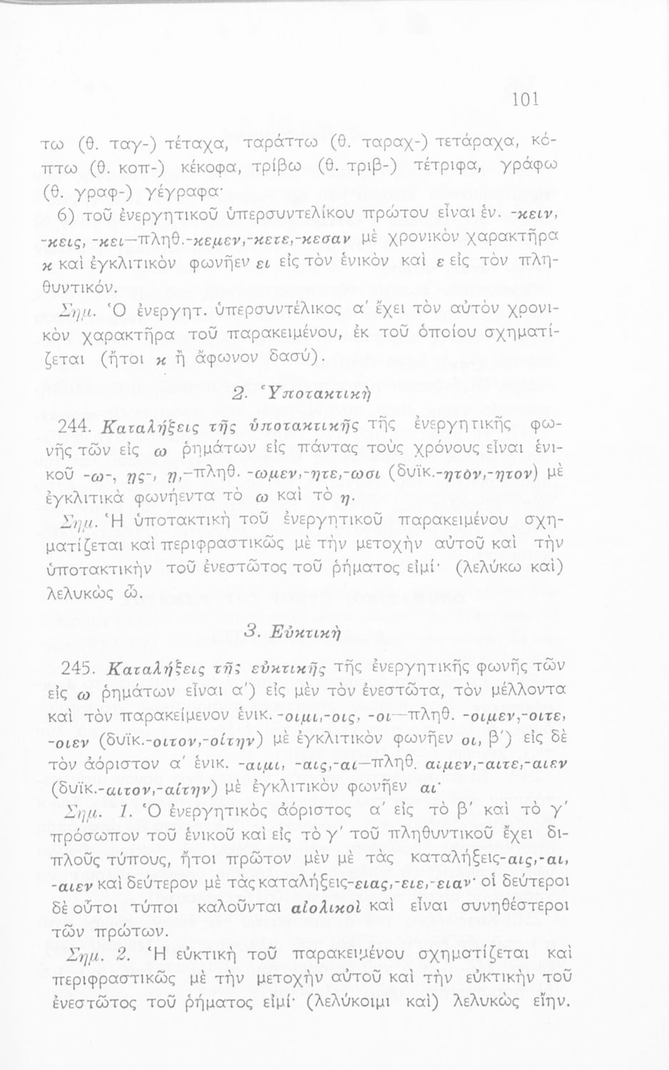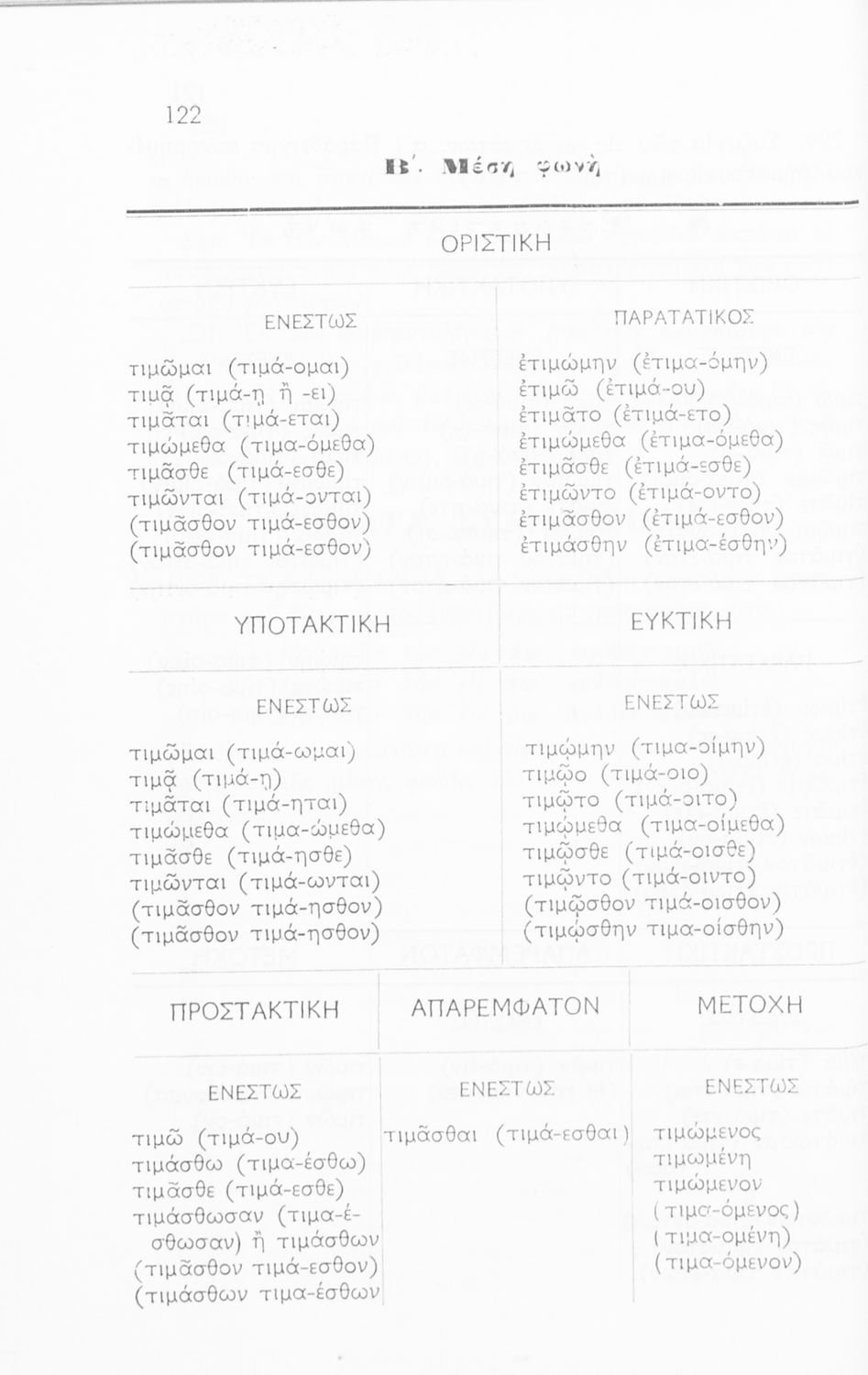 Σχολικό εγχειρίδιο Αρχαίων Ελληνικών Γυμνασίου που περιλαμβάνει τη γραμματική της αρχαίας ελληνικής και είναι χωρισμένο σε φθογγολογικό και τυπολογικό μέρος Περιέχει και κατάλογο ανωμάλων ρημάτων, ασκήσεις και