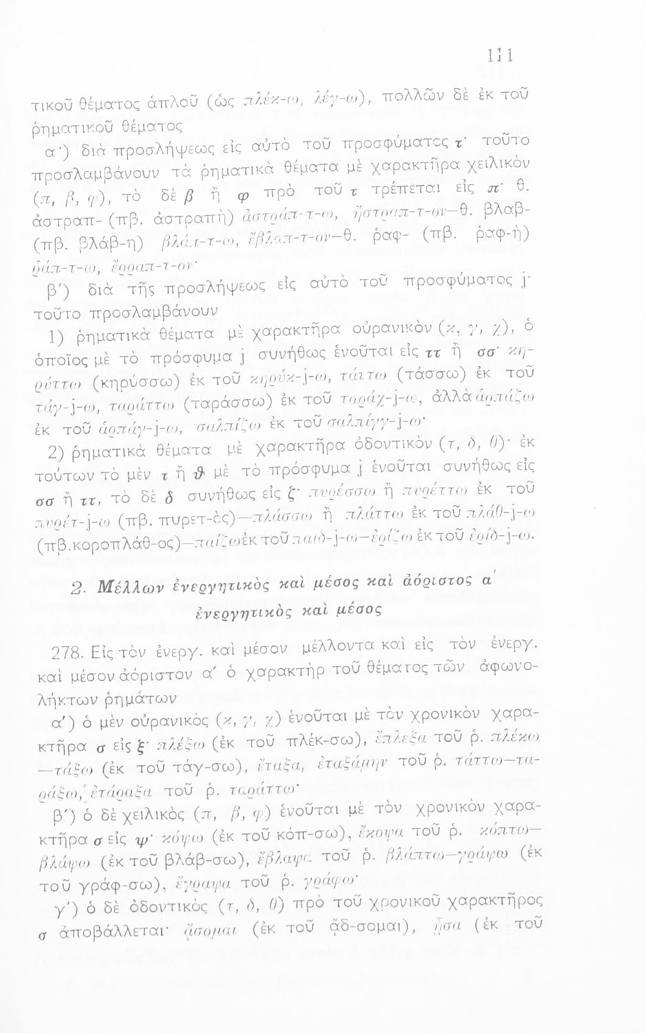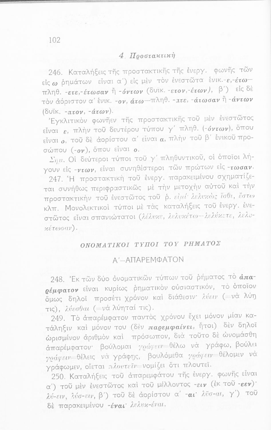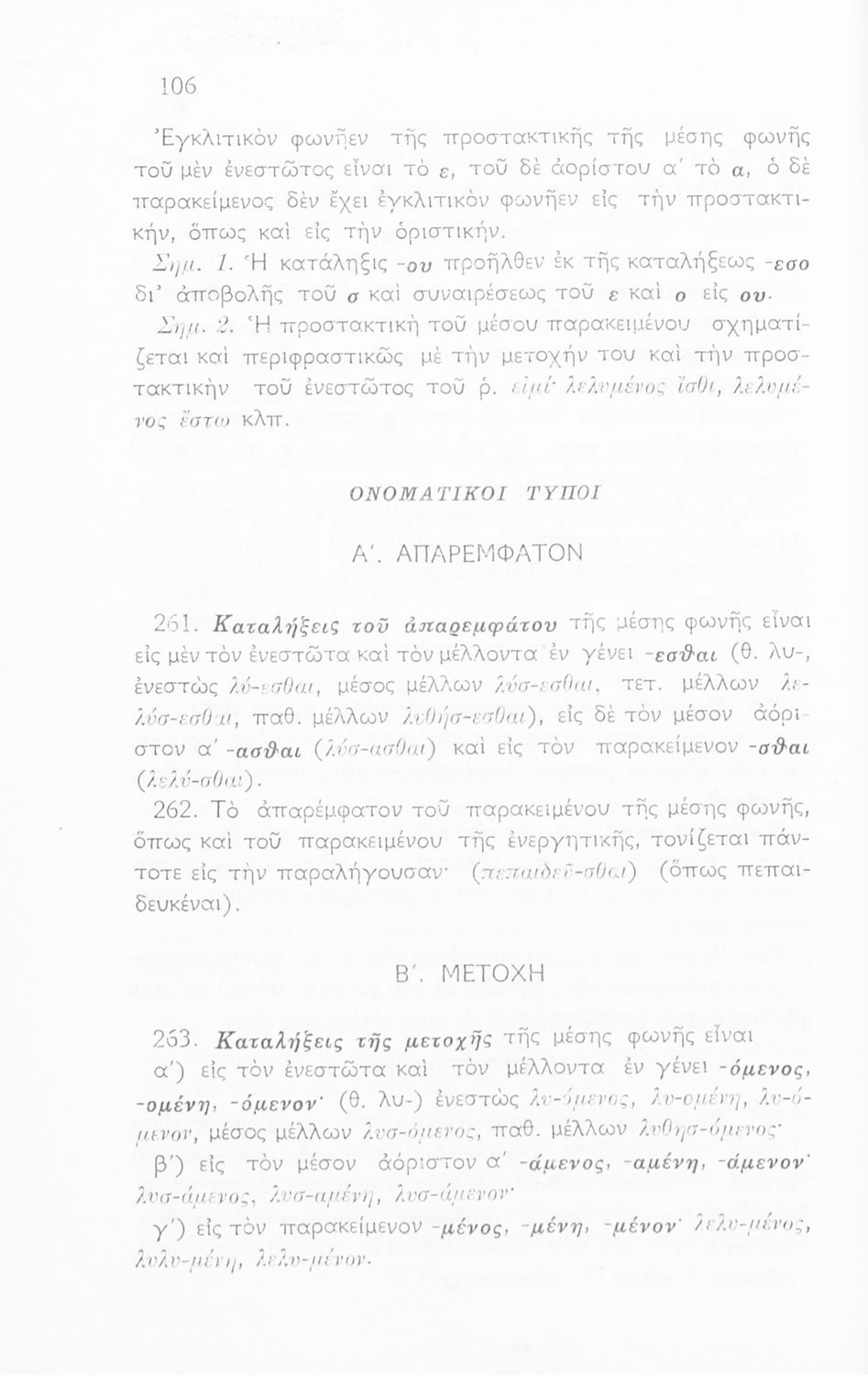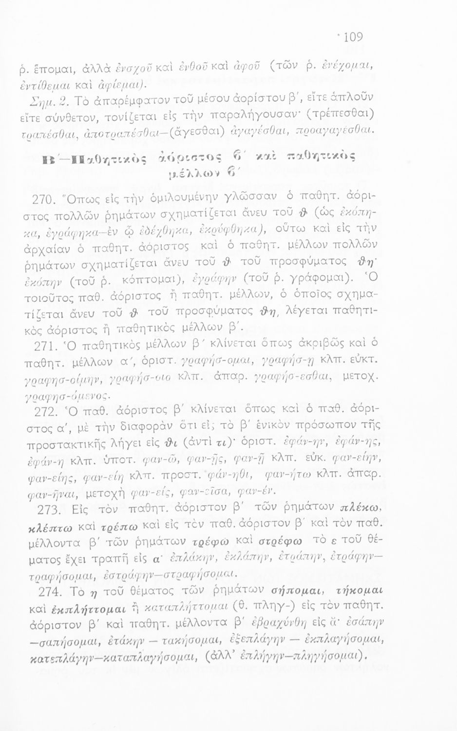 Σχολικό εγχειρίδιο Αρχαίων Ελληνικών Γυμνασίου που περιλαμβάνει τη γραμματική της αρχαίας ελληνικής και είναι χωρισμένο σε φθογγολογικό και τυπολογικό μέρος Περιέχει και κατάλογο ανωμάλων ρημάτων.