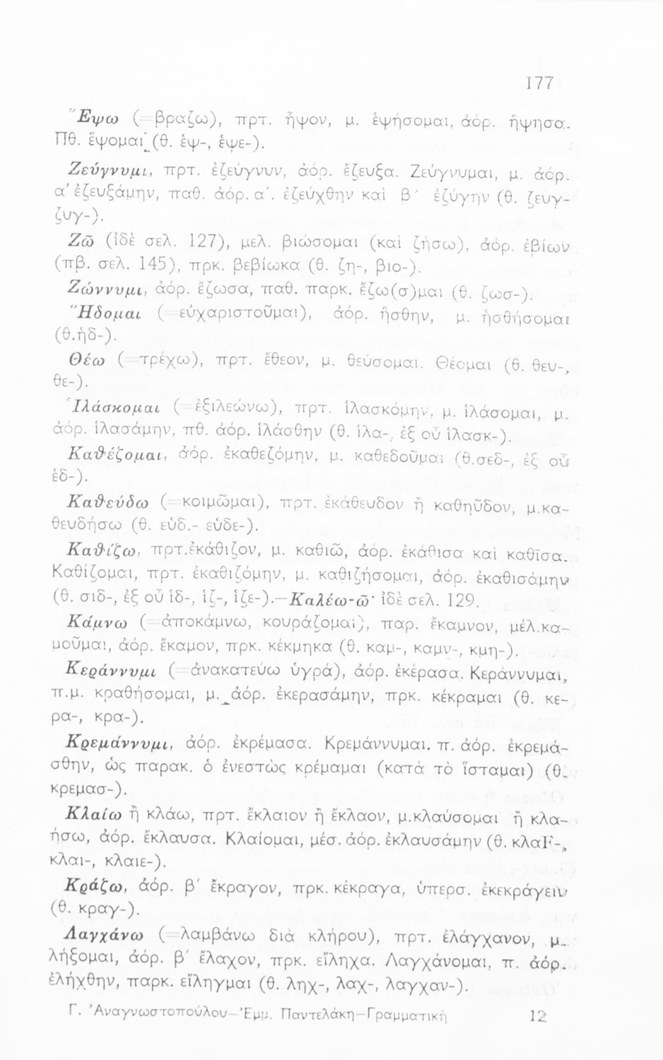 Σχολικό εγχειρίδιο Αρχαίων Ελληνικών Γυμνασίου που περιλαμβάνει τη γραμματική της αρχαίας ελληνικής και είναι χωρισμένο σε φθογγολογικό και τυπολογικό μέρος Περιέχει και κατάλογο ανωμάλων ρημάτων.