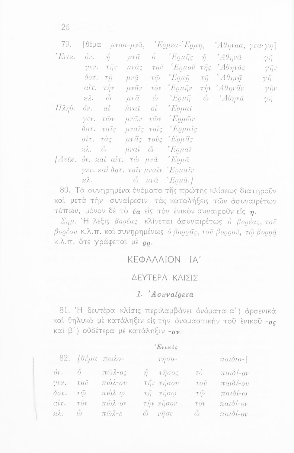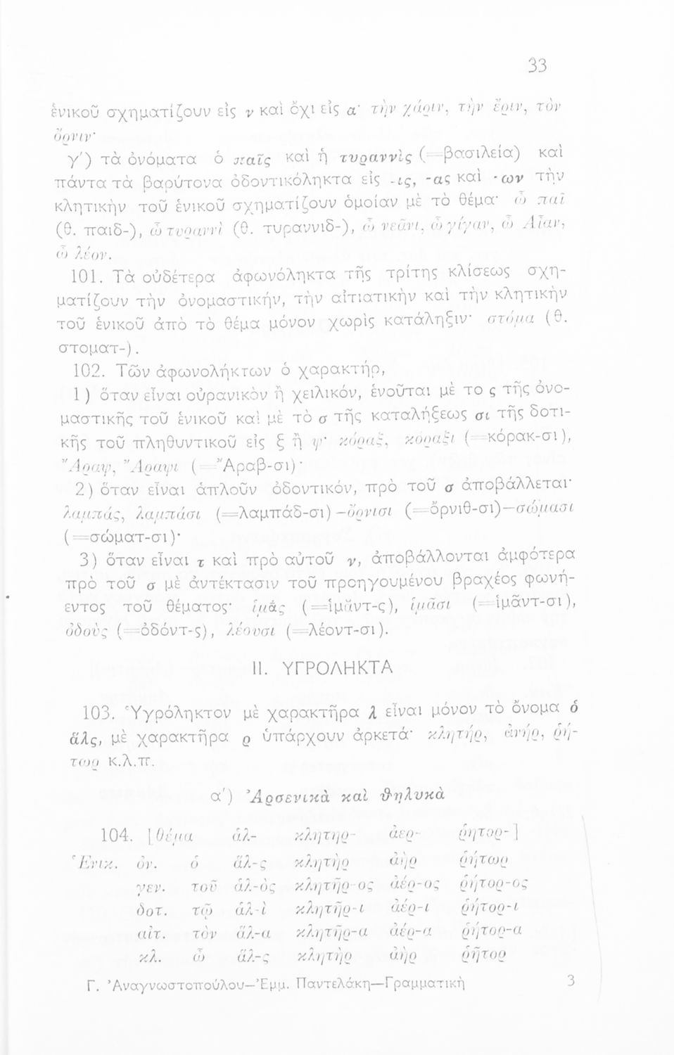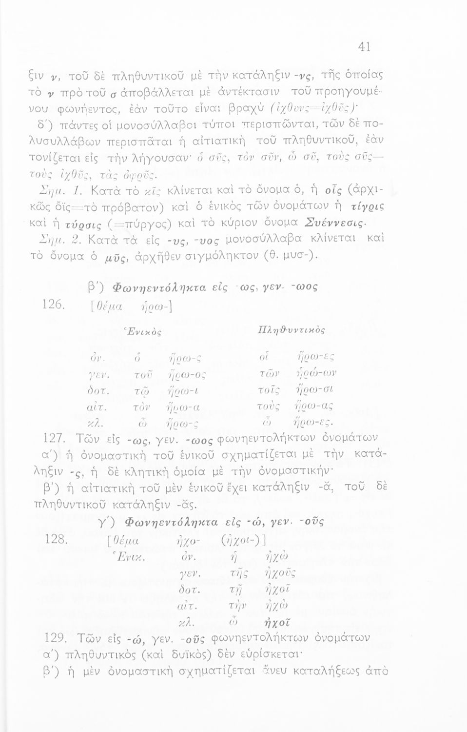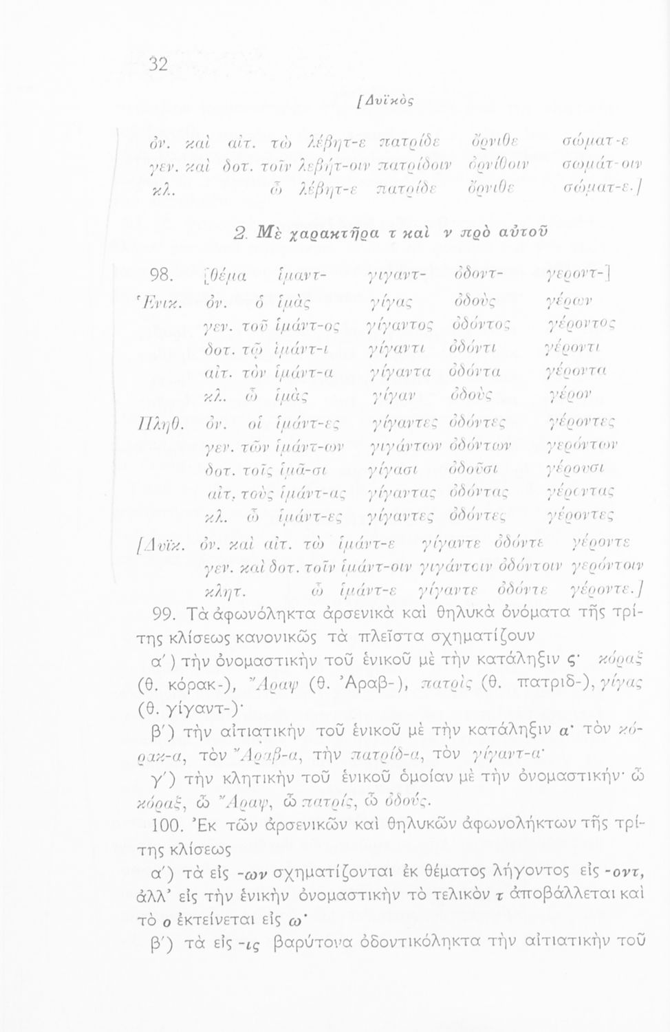 Σχολικό εγχειρίδιο Αρχαίων Ελληνικών Γυμνασίου που περιλαμβάνει τη γραμματική της αρχαίας ελληνικής και είναι χωρισμένο σε φθογγολογικό και τυπολογικό μέρος Περιέχει και κατάλογο ανωμάλων ρημάτων, ασκήσεις και