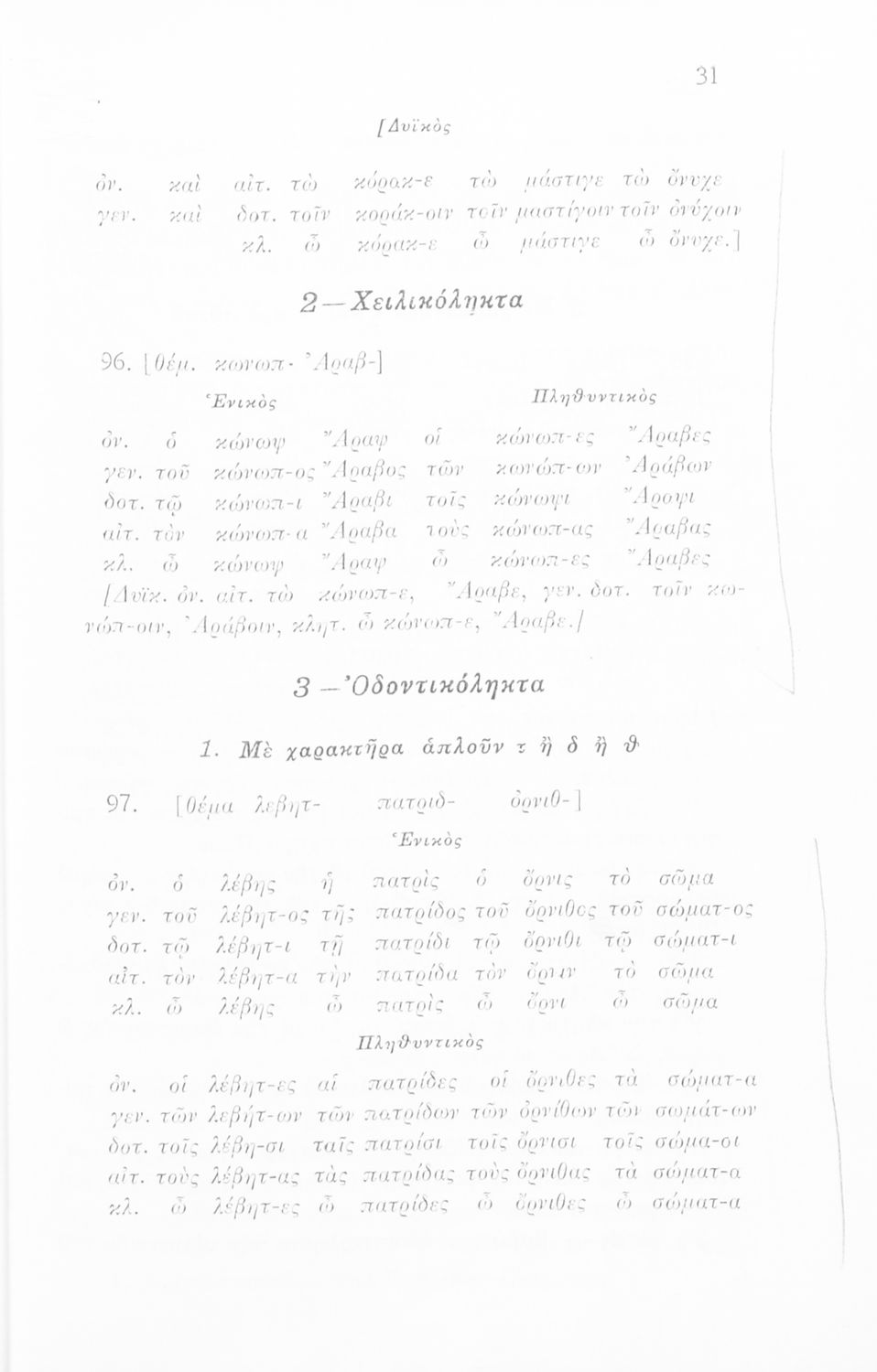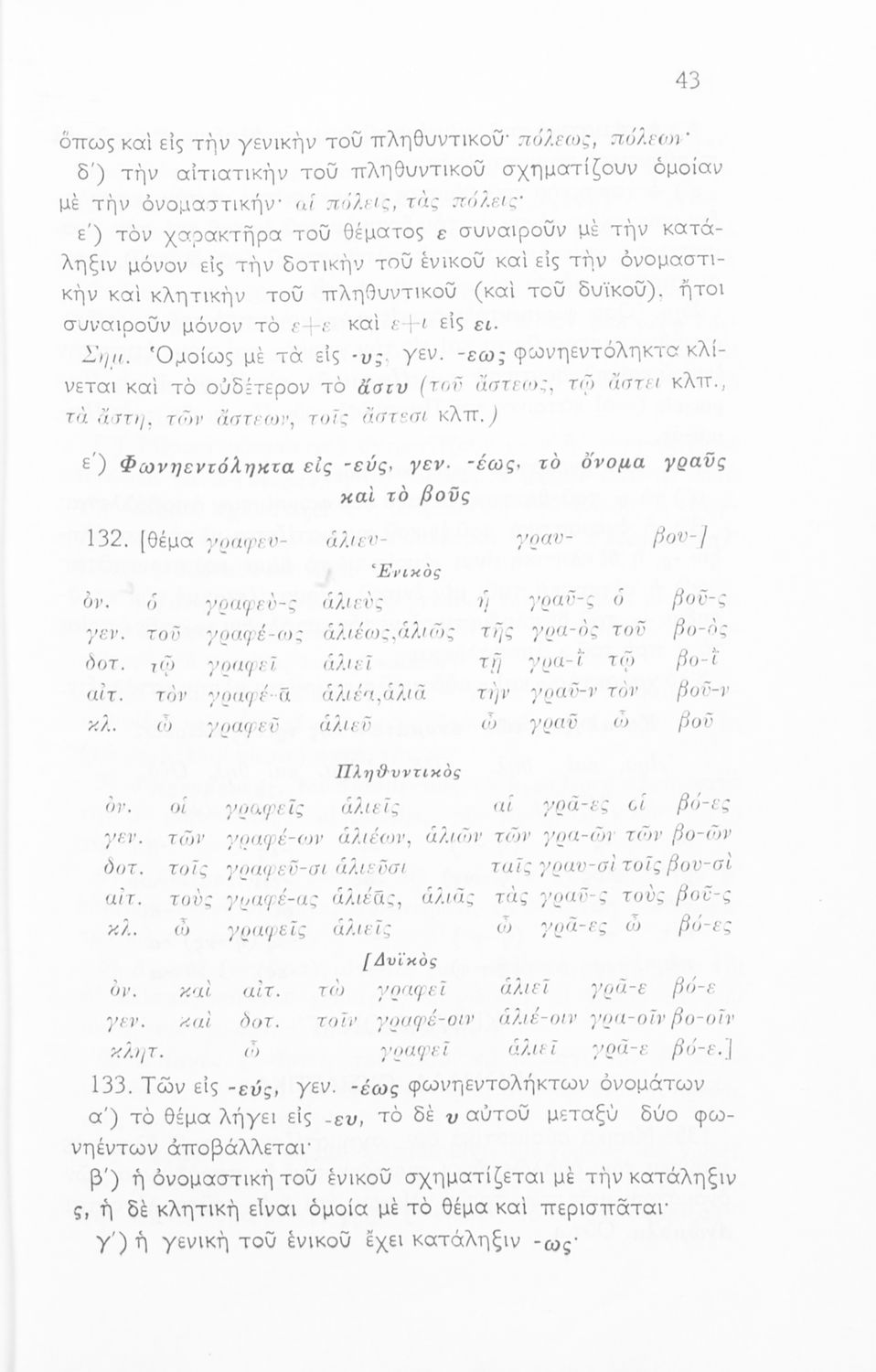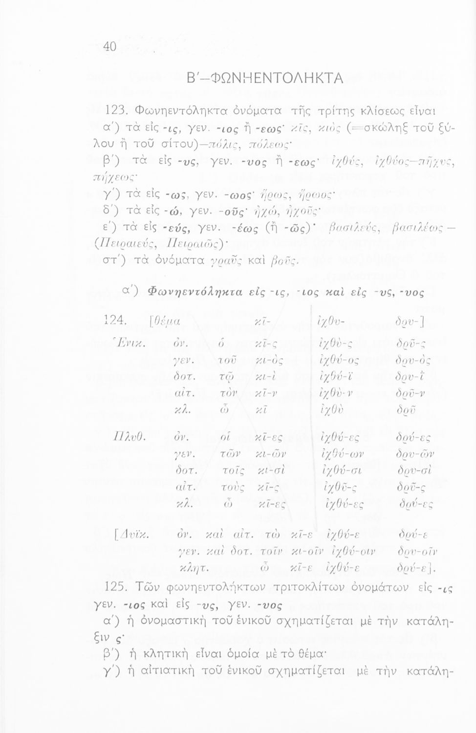Σχολικό εγχειρίδιο Αρχαίων Ελληνικών Γυμνασίου που περιλαμβάνει τη γραμματική της αρχαίας ελληνικής και είναι χωρισμένο σε φθογγολογικό και τυπολογικό μέρος Περιέχει και κατάλογο ανωμάλων ρημάτων, ασκήσεις και