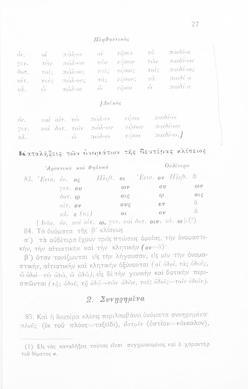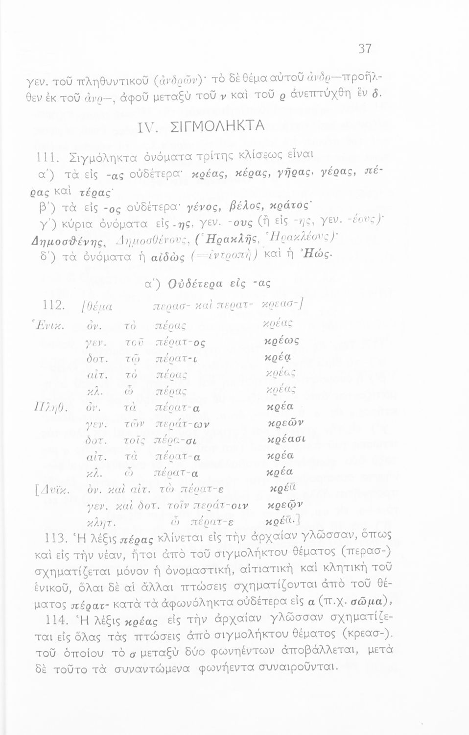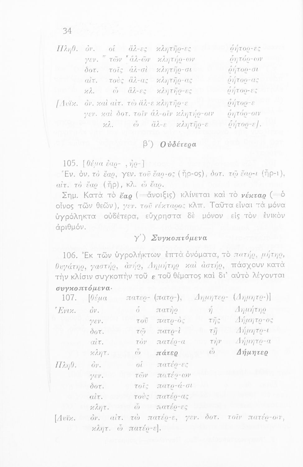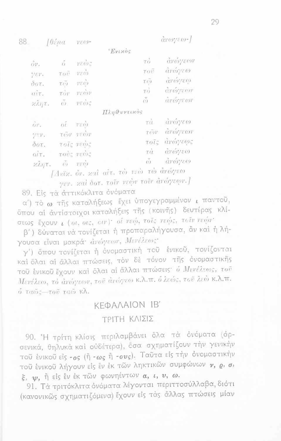 Σχολικό εγχειρίδιο Αρχαίων Ελληνικών Γυμνασίου που περιλαμβάνει τη γραμματική της αρχαίας ελληνικής και είναι χωρισμένο σε φθογγολογικό και τυπολογικό μέρος Περιέχει και κατάλογο ανωμάλων ρημάτων, ασκήσεις και