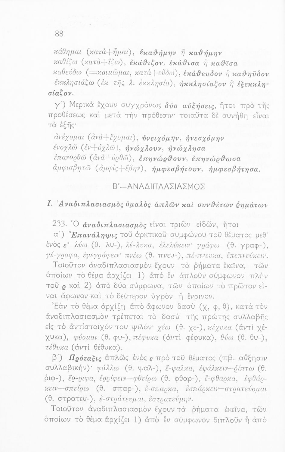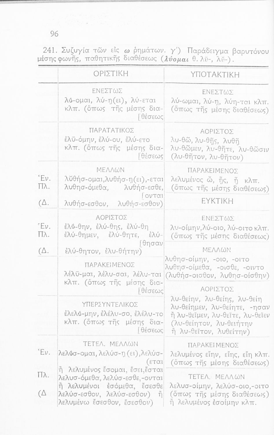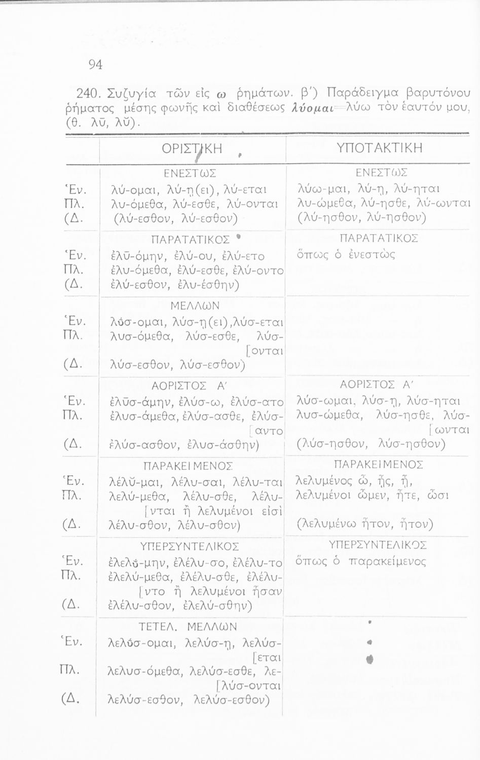 Σχολικό εγχειρίδιο Αρχαίων Ελληνικών Γυμνασίου που περιλαμβάνει τη γραμματική της αρχαίας ελληνικής και είναι χωρισμένο σε φθογγολογικό και τυπολογικό μέρος Περιέχει και κατάλογο ανωμάλων ρημάτων.