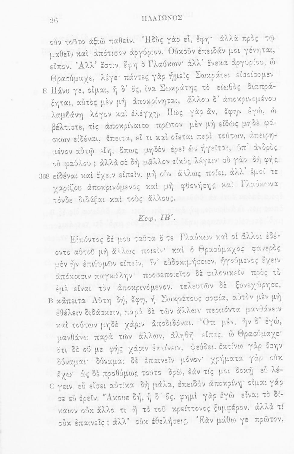 Σχολικό εγχειρίδιο Αρχαίων Ελληνικών ΣΤ΄ Εξαταξίου Γυμνασίου που περιλαμβάνει εισαγωγικό κείμενο για τη διδασκαλία του Σωκράτη και περίληψη του έργου, τα κεφάλαια Β΄ έως ΚΕ΄ και περιλήψεις των κεφαλαίων 26 έως
