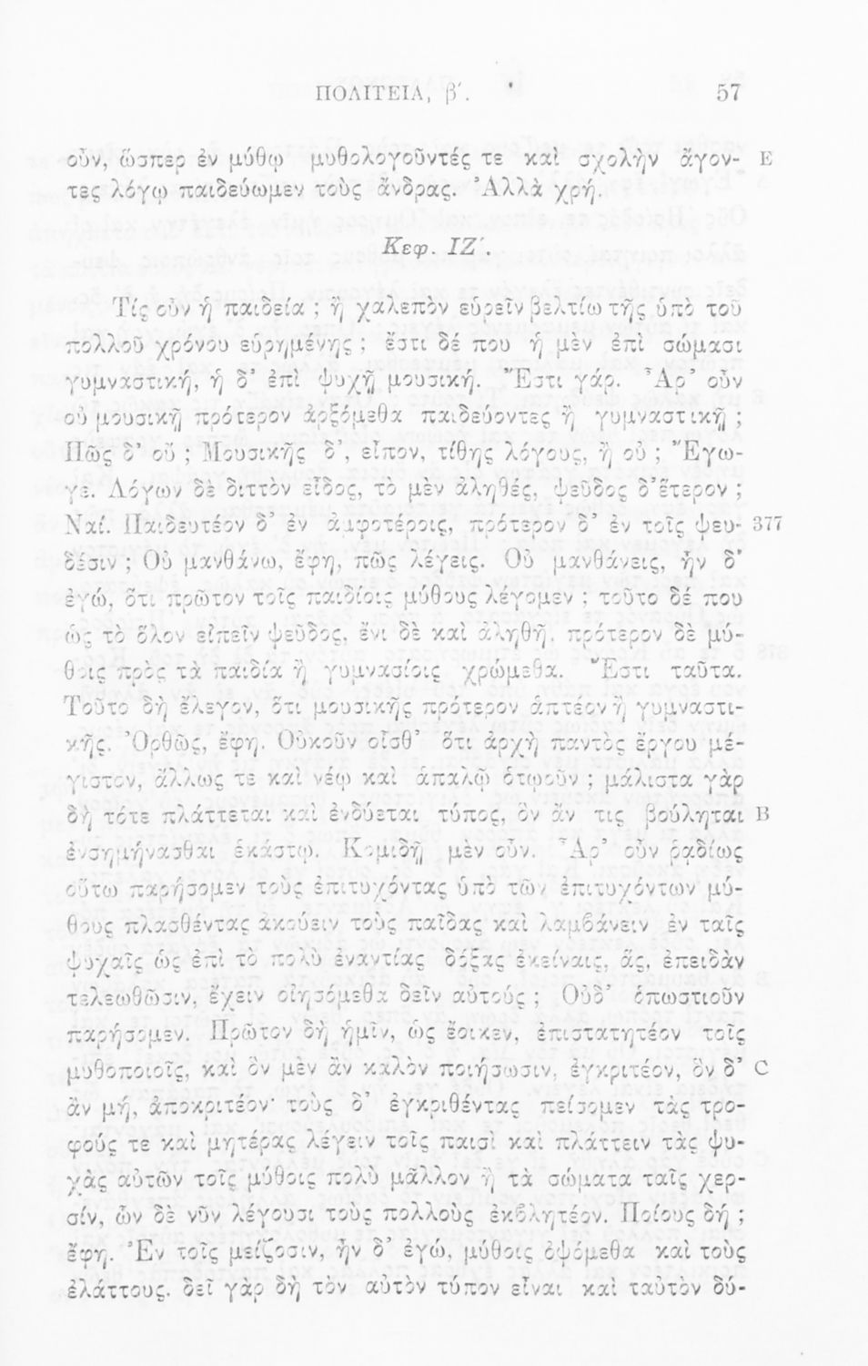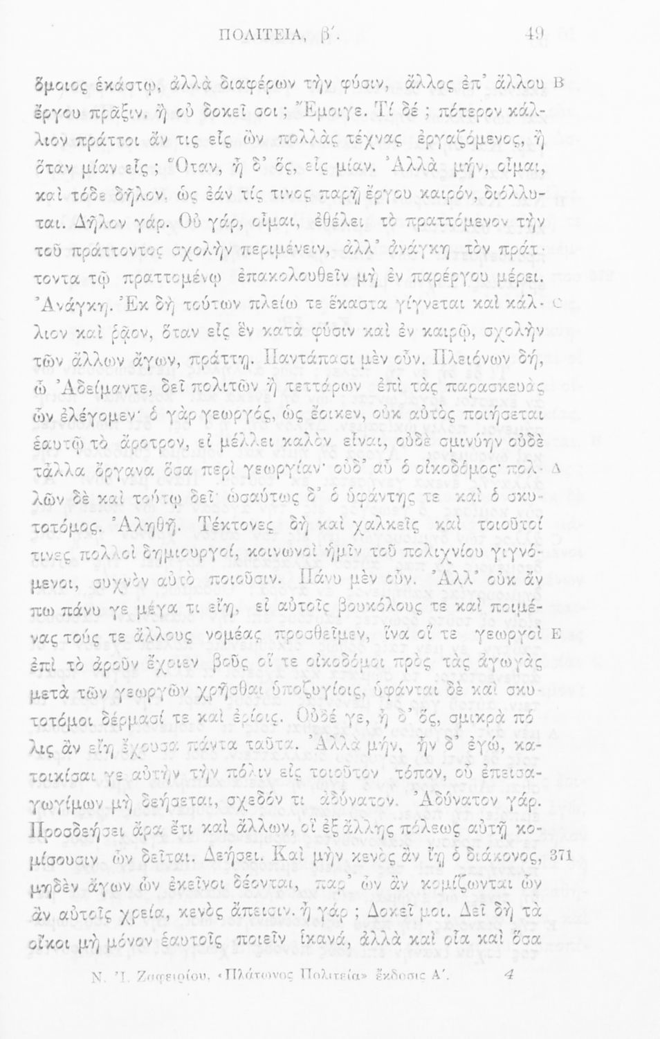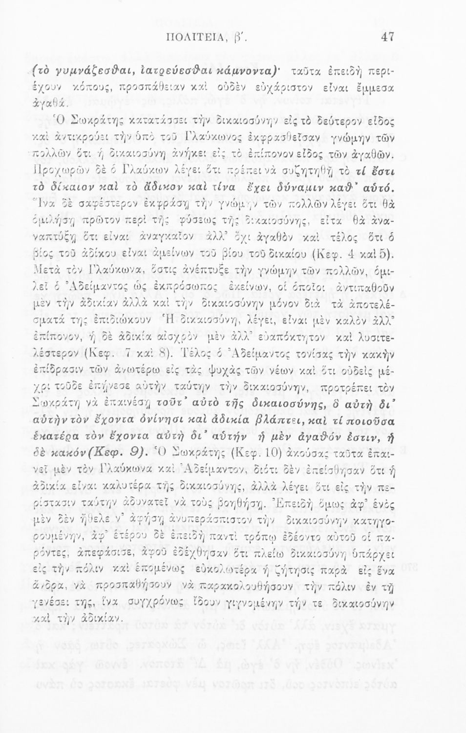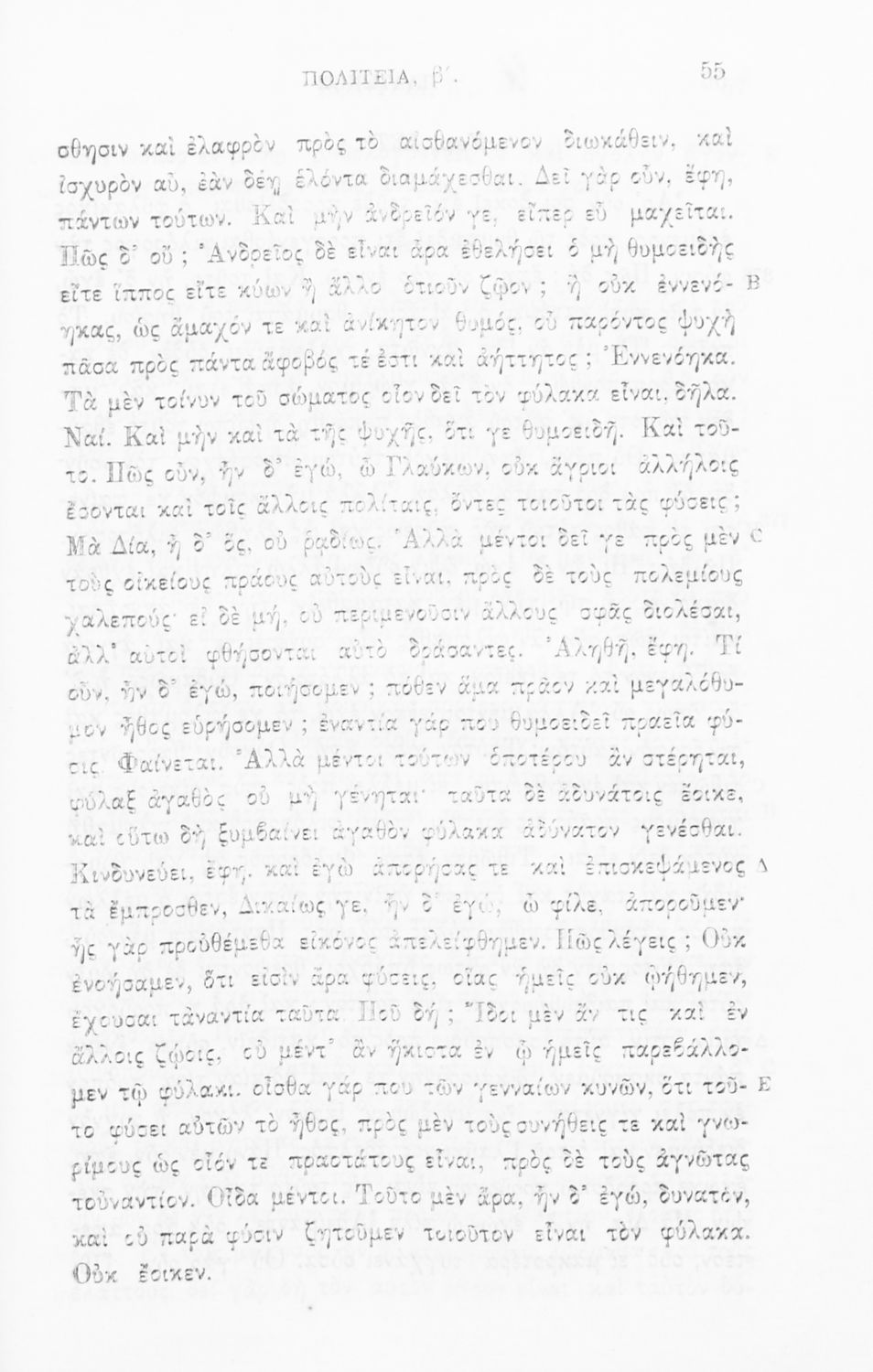 520 ## _aΣχολικό εγχειρίδιο Αρχαίων Ελληνικών για την τελευταία τάξη των Γυμνασίων και Διδασκαλείων. Το βιβλίο περιέχει το έργο του Πλάτωνα, 'Πολιτεία'. Το κείμενο συνοδεύεται από γλωσσικές και ερμηνευτικές σημειώσεις.