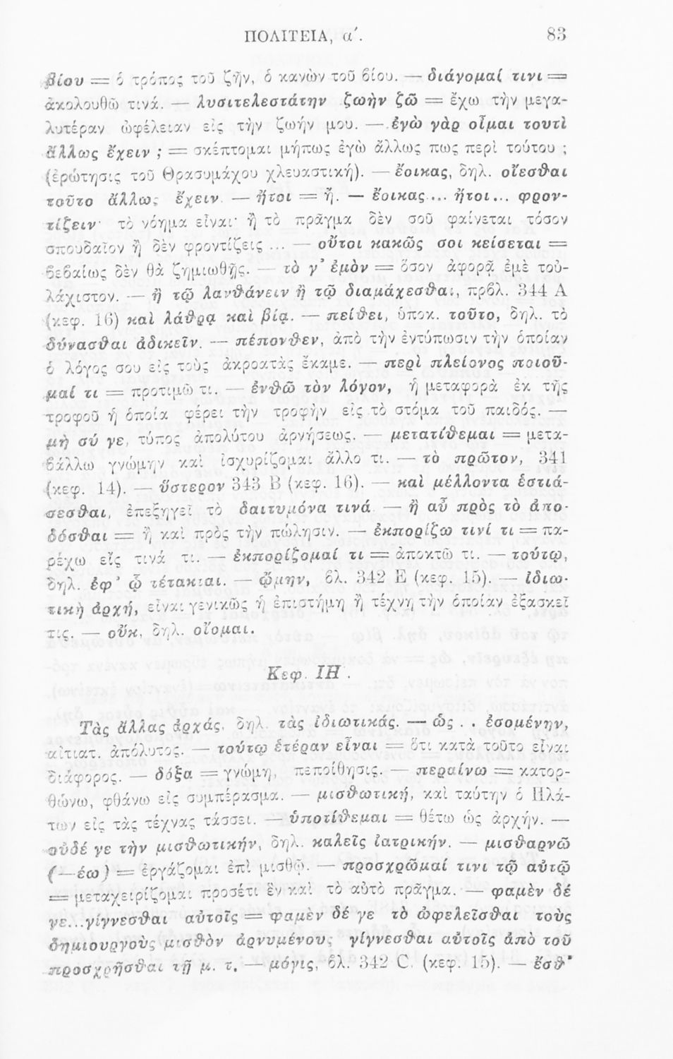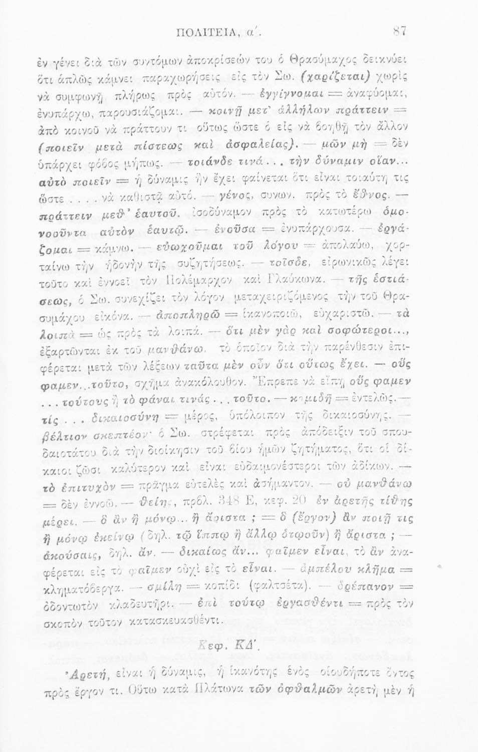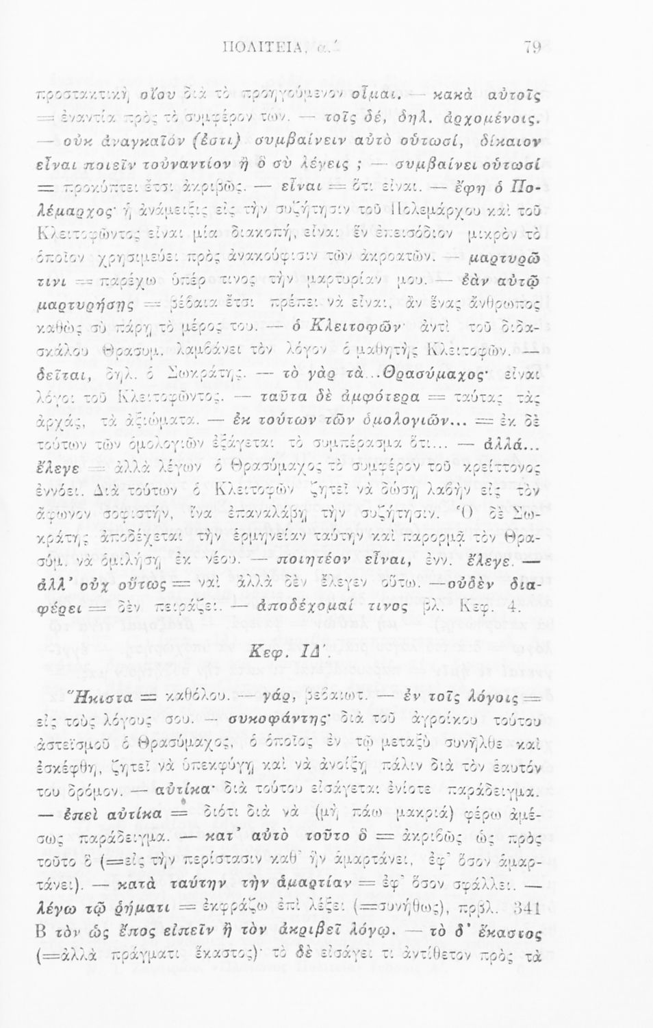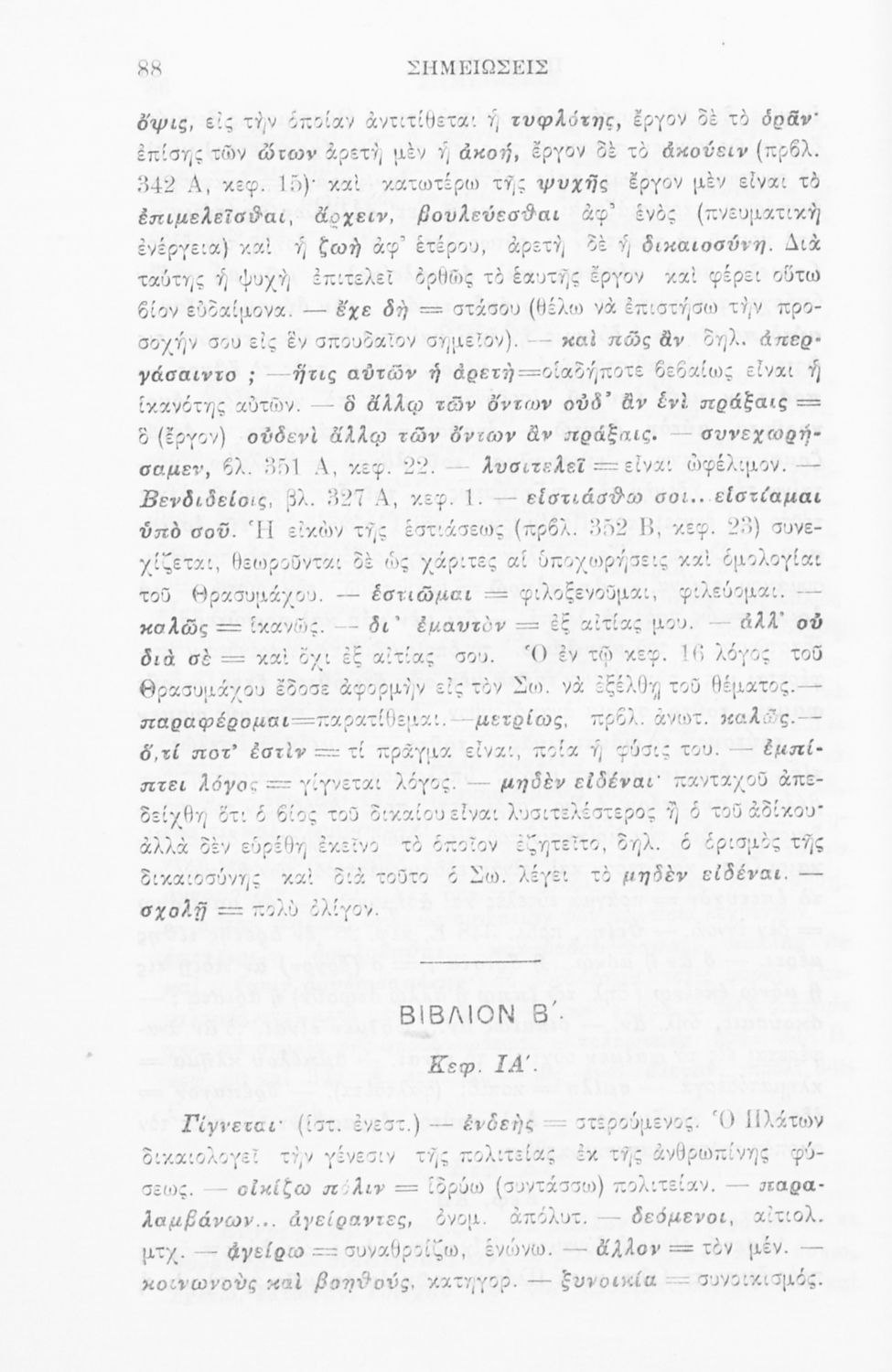 Σχολικό εγχειρίδιο Αρχαίων Ελληνικών για την τελευταία τάξη των Γυμνασίων και Διδασκαλείων. Το βιβλίο περιέχει το έργο του Πλάτωνα, 'Πολιτεία'. Το κείμενο συνοδεύεται από γλωσσικές και ερμηνευτικές σημειώσεις.