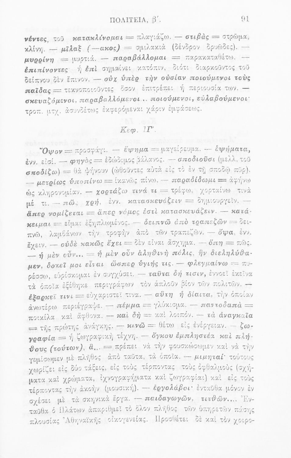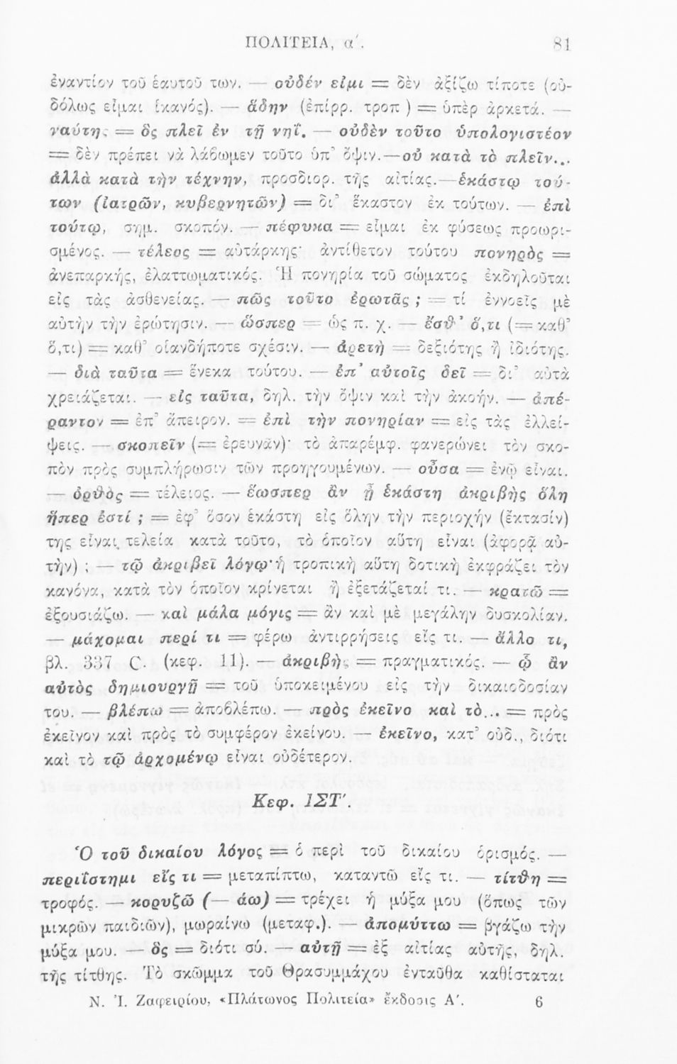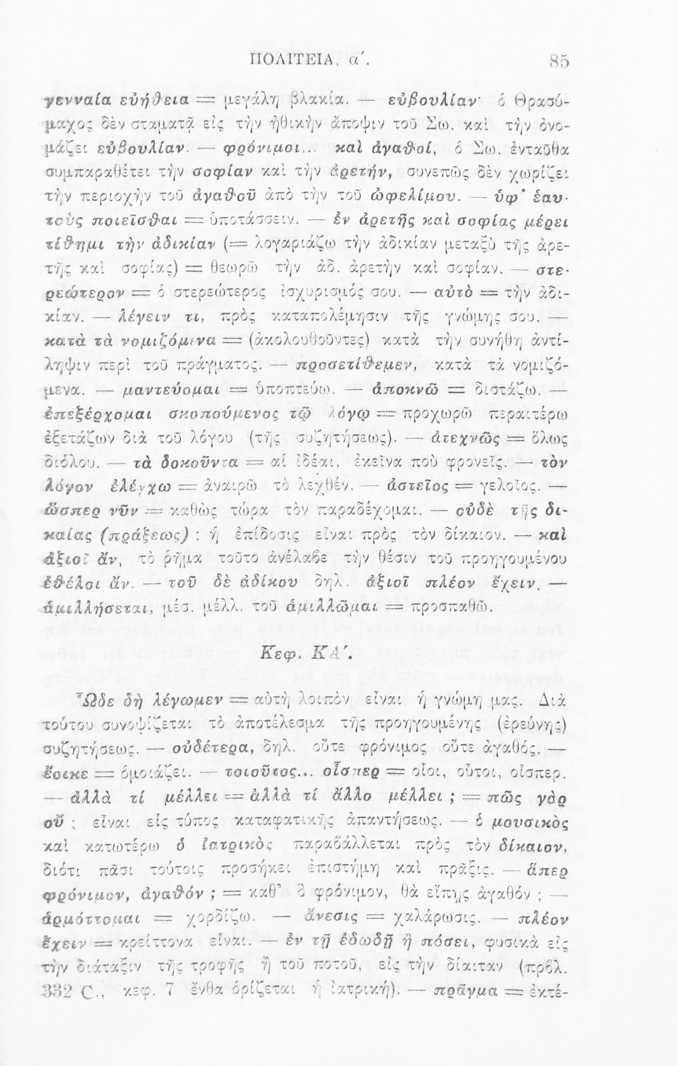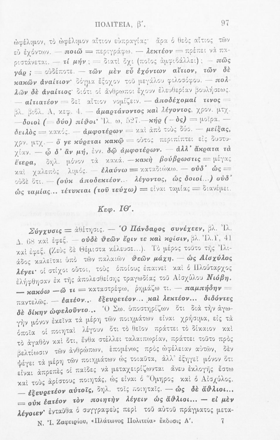 Σχολικό εγχειρίδιο Αρχαίων Ελληνικών για την τελευταία τάξη των Γυμνασίων και Διδασκαλείων. Το βιβλίο περιέχει το έργο του Πλάτωνα, 'Πολιτεία'. Το κείμενο συνοδεύεται από γλωσσικές και ερμηνευτικές σημειώσεις.
