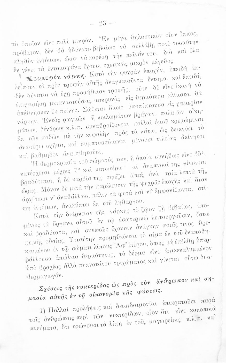 Σχολικό εγχειρίδιο Ζωολογίας για τα Γυμνάσια, τα Παρθεναγωγεία και τα Διδασκαλεία που εστιάζει στην ανθρώπινη φυσιολογία και παρουσιάζει τα διάφορα ζώα ανάλογα με την συνομοταξία στην οποία ανήκουν.