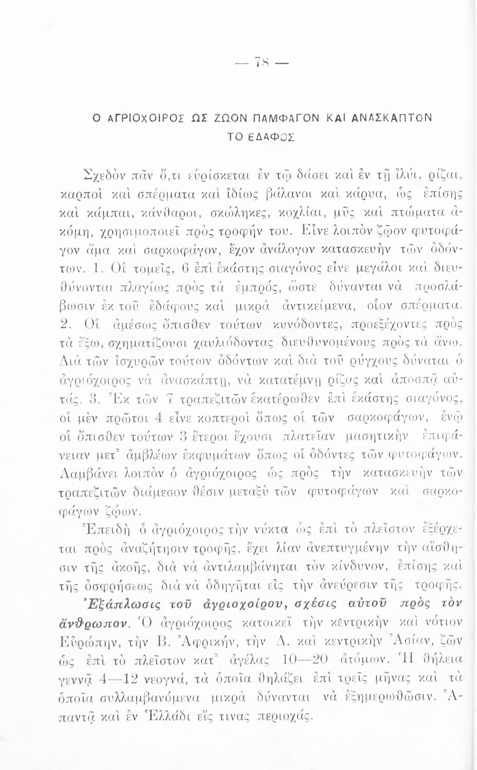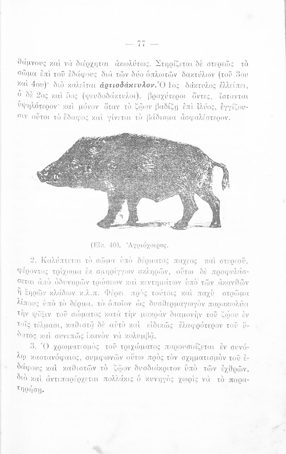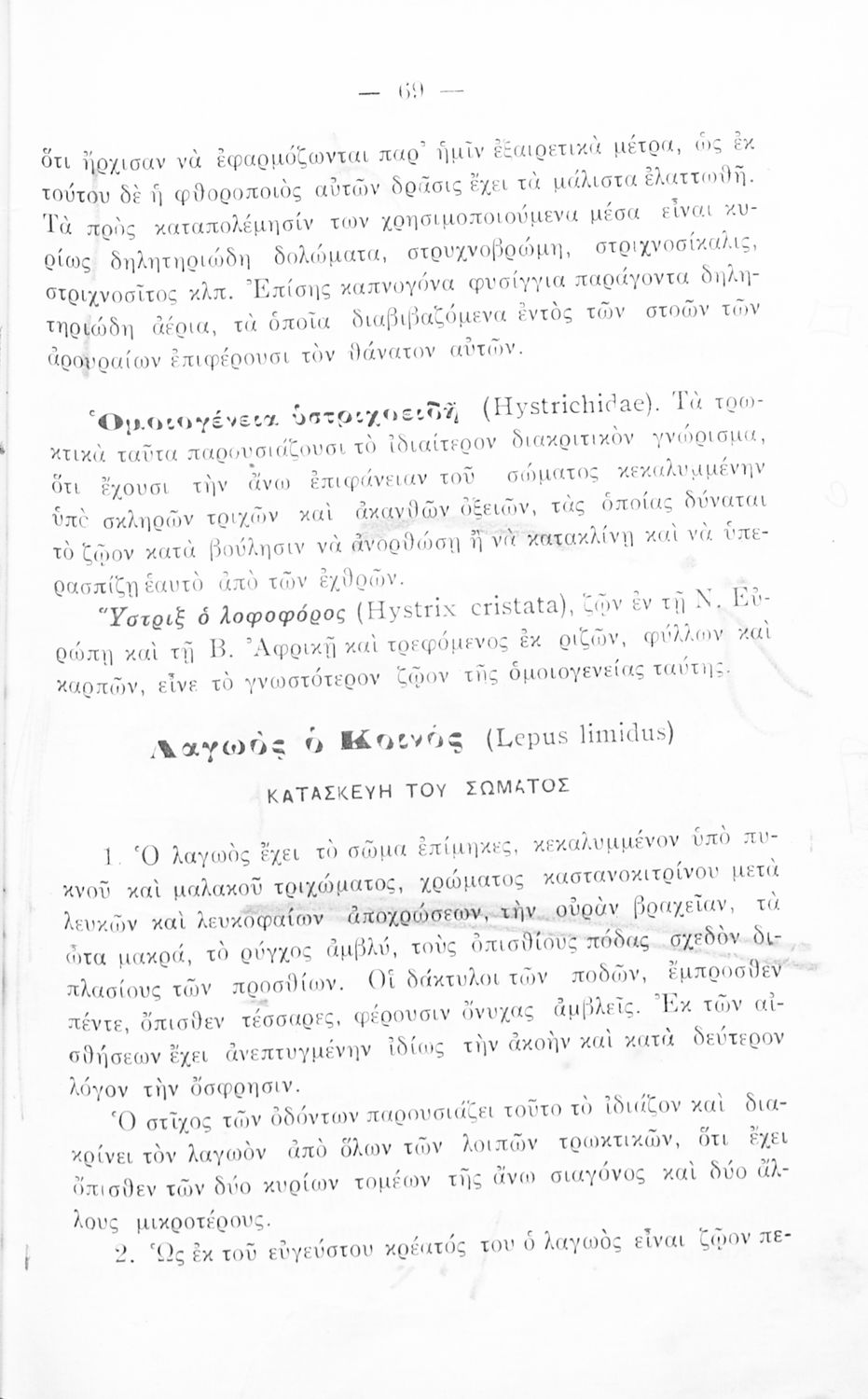 Σχολικό εγχειρίδιο Ζωολογίας για τα Γυμνάσια, τα Διδασκαλεία και τα Παρθεναγωγεία που εστιάζει στην ανθρώπινη φυσιολογία και ανατομία και παρουσιάζει τα διάφορα ζώα ανάλογα με την συνομοταξία στην οποία ανήκουν.
