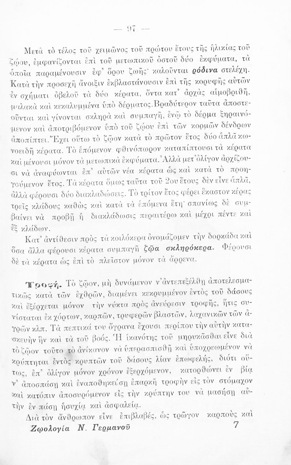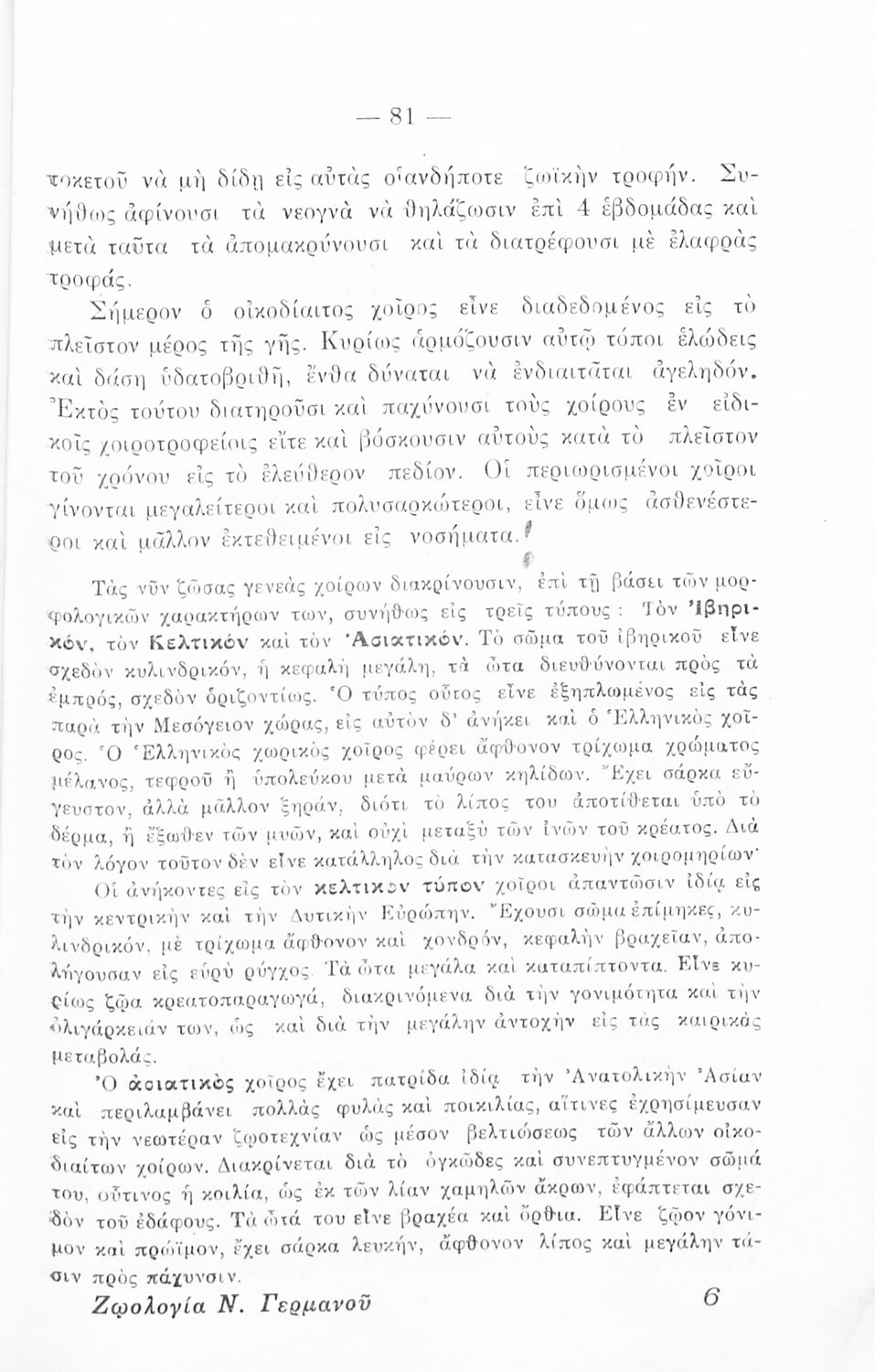 Σχολικό εγχειρίδιο Ζωολογίας για τα Γυμνάσια, τα Διδασκαλεία και τα Παρθεναγωγεία που εστιάζει στην ανθρώπινη φυσιολογία και ανατομία και παρουσιάζει τα διάφορα ζώα ανάλογα με την συνομοταξία στην οποία ανήκουν.