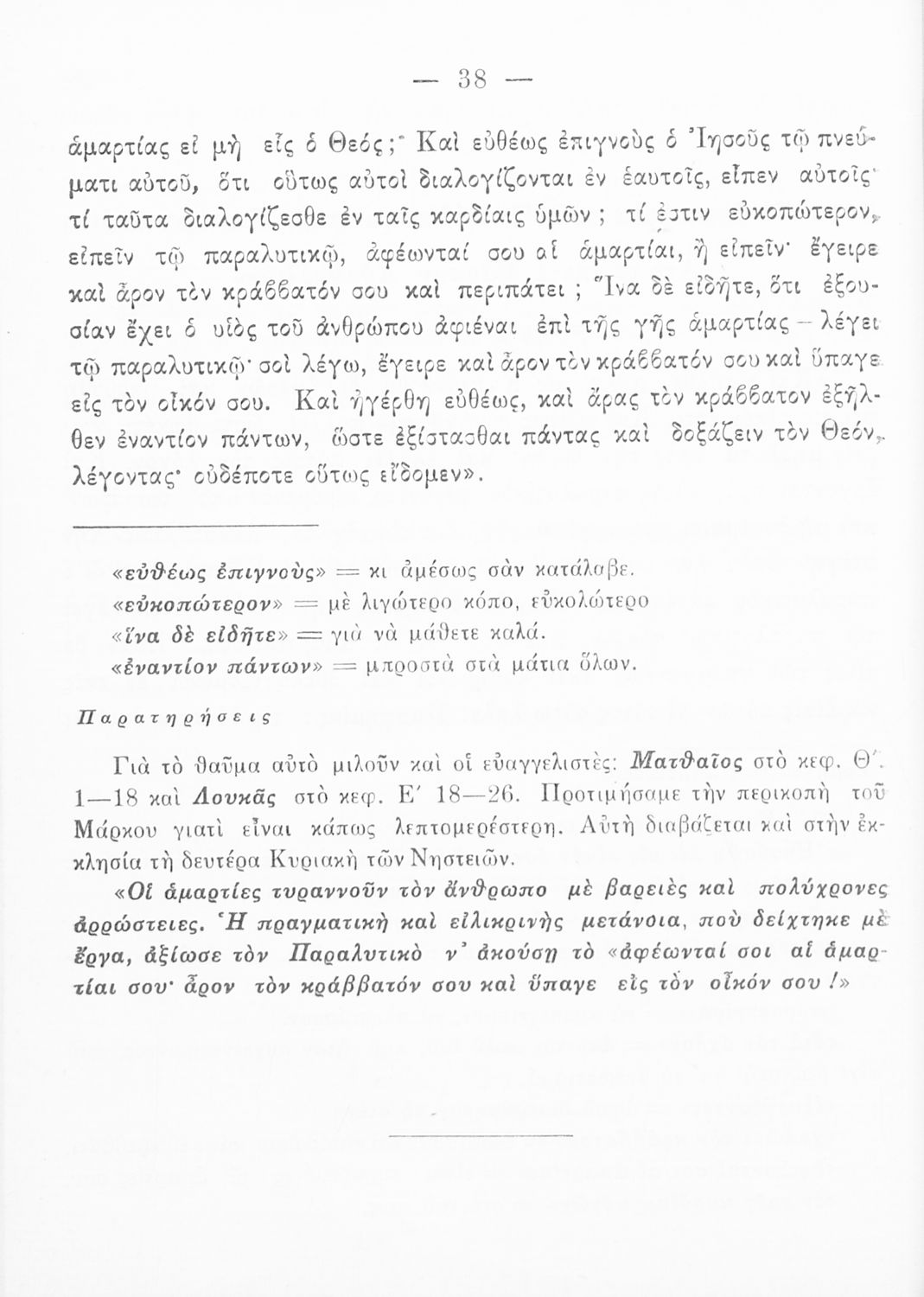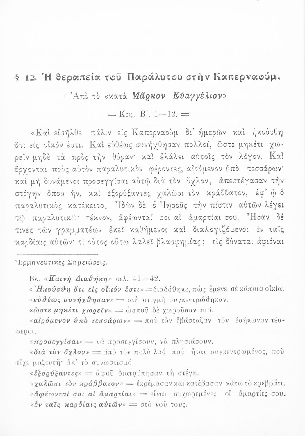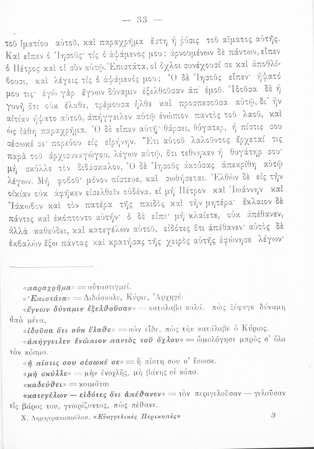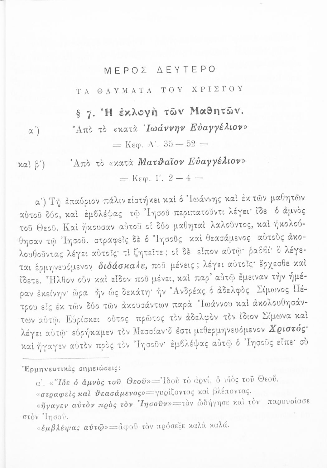 Το σύγγραμμα ήταν μαθητικό βοήθημα για το μάθημα των Θρησκευτικών. Περιέχει κείμενο, σχόλια των Ευαγγελίων