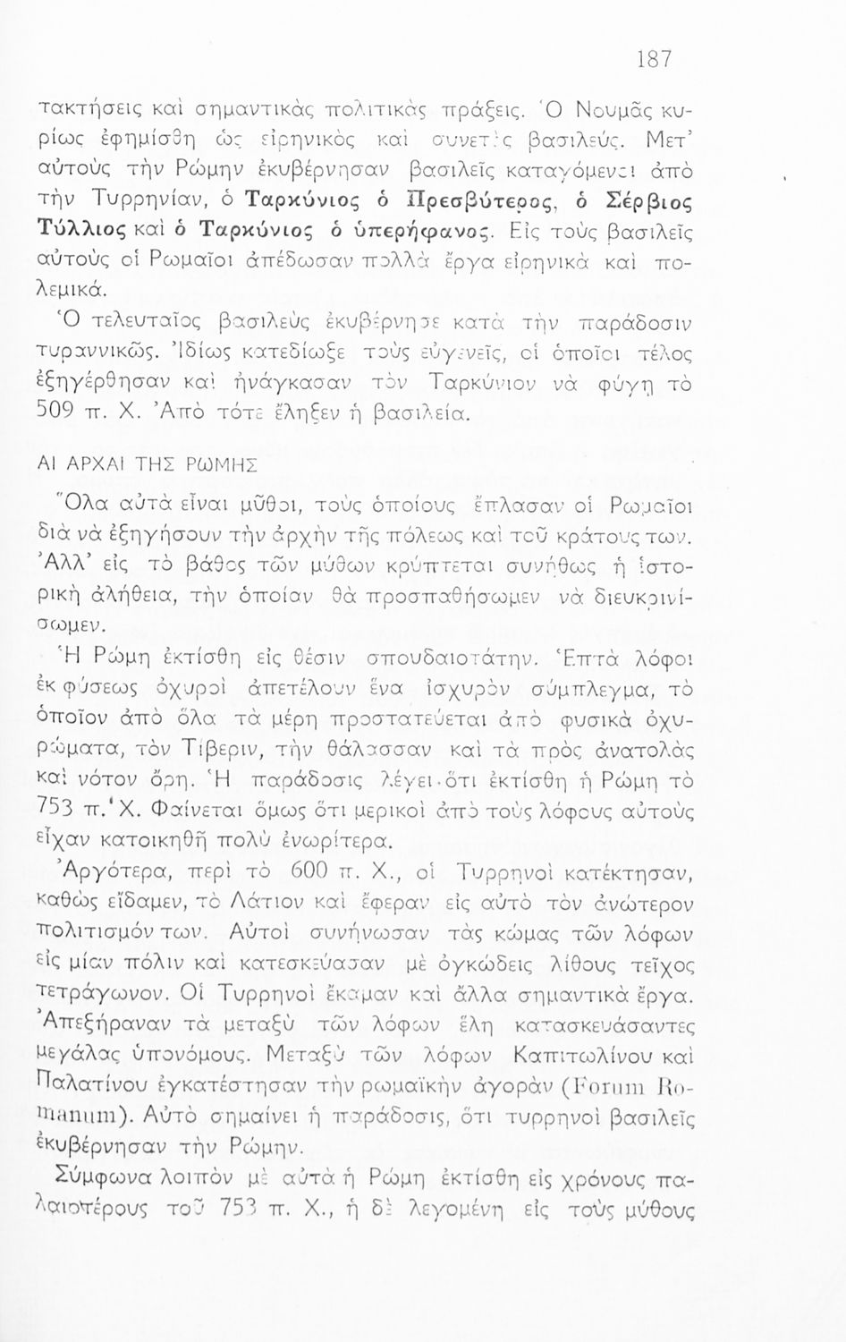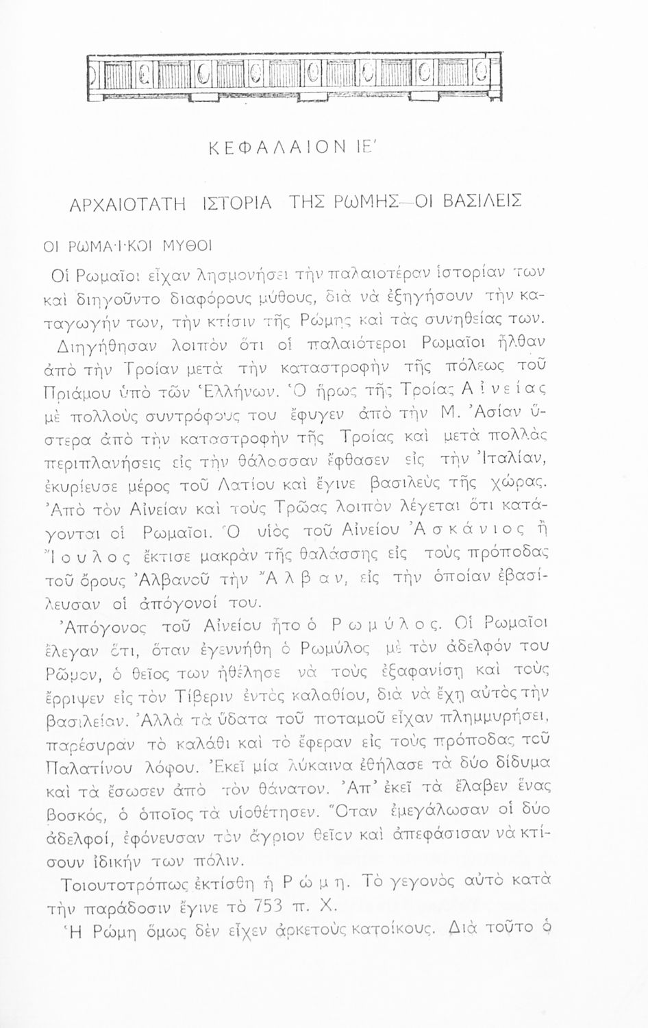 Σχολικό εγχειρίδιο Ιστορίας Β΄ Γυμνασίου που καλύπτει την περίοδο από την κτίση της Ρώμης ως την κτίση της Κωνσταντινούπολης. Περιέχει και χρονολογικό πίνακα γεγονότων.