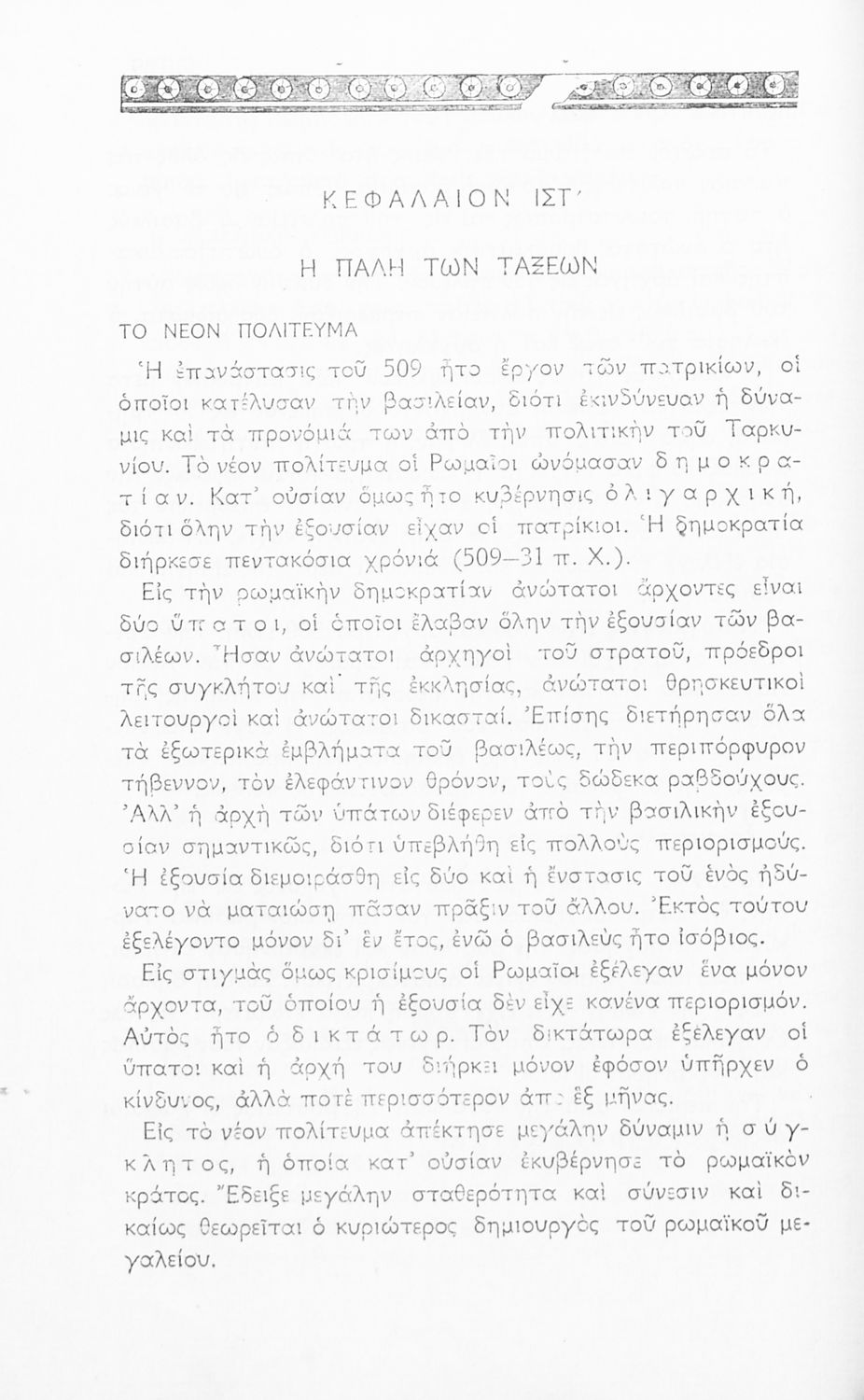 Σχολικό εγχειρίδιο Ιστορίας Β΄ Γυμνασίου που καλύπτει την περίοδο από την κατάρρευση της Μακεδονικής Ηγεμονίας μέχρι τα χρόνια του Μ. Κωνσταντίνου και του Θεοδοσίου του Μεγάλου. Περιέχει χρονολογικό πίνακα των