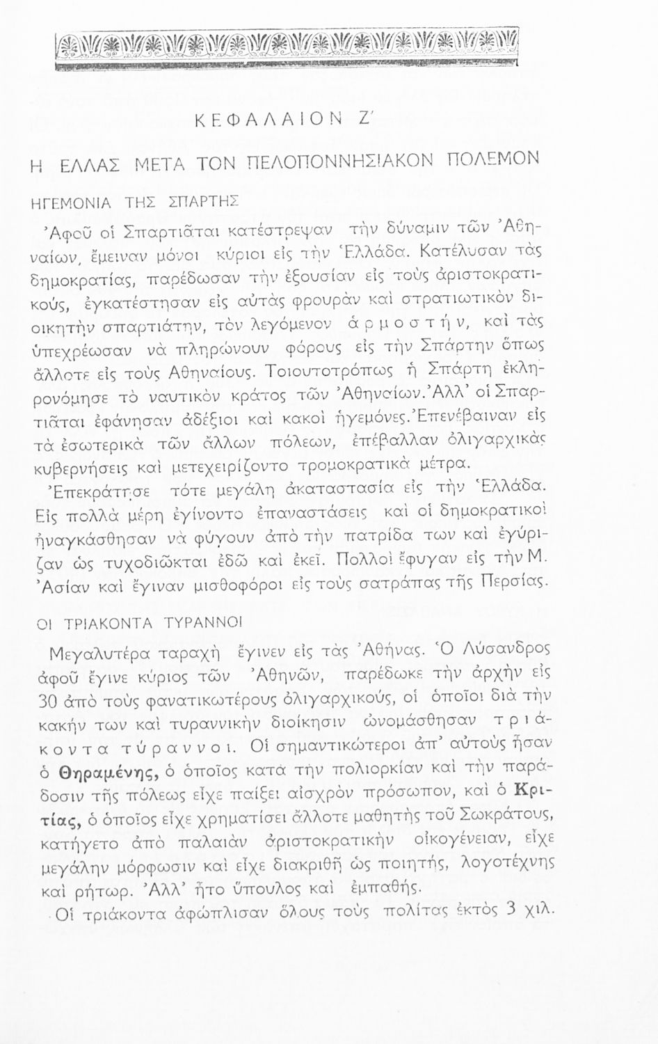 Μαθητικό βοήθημα της Β΄ Γυμνασίου για το μάθημα της Ιστορίας. Το εγχειρίδιο περιέχει περιλήψεις των κεφαλαίων του σχολικού βιβλίου. Ο συγγραφέας ήταν Γυμνασιάρχης.