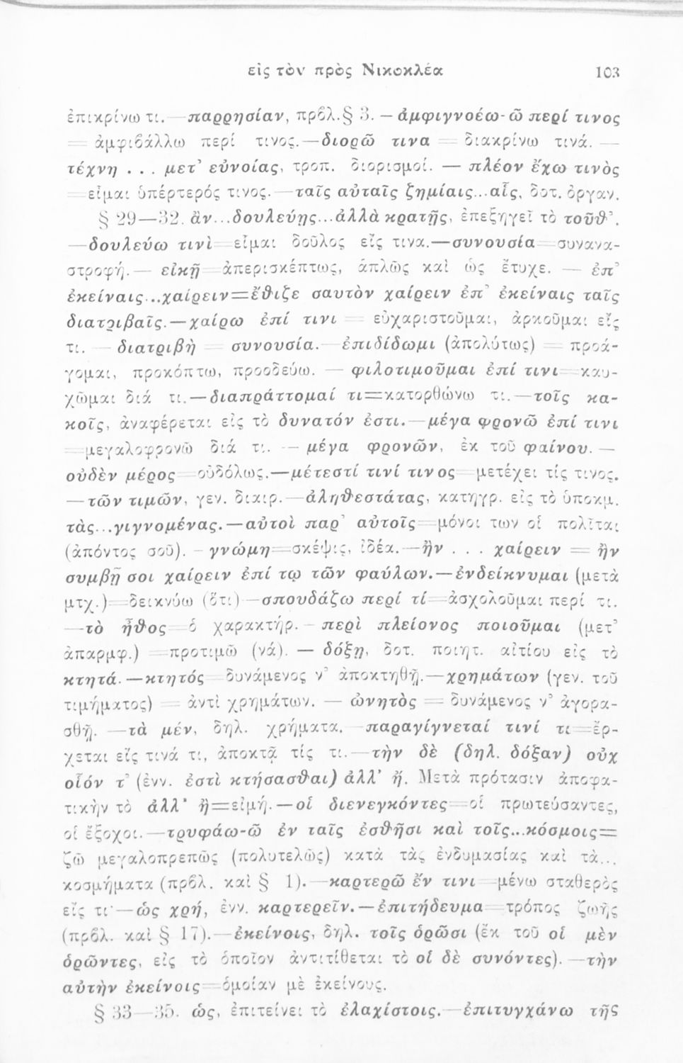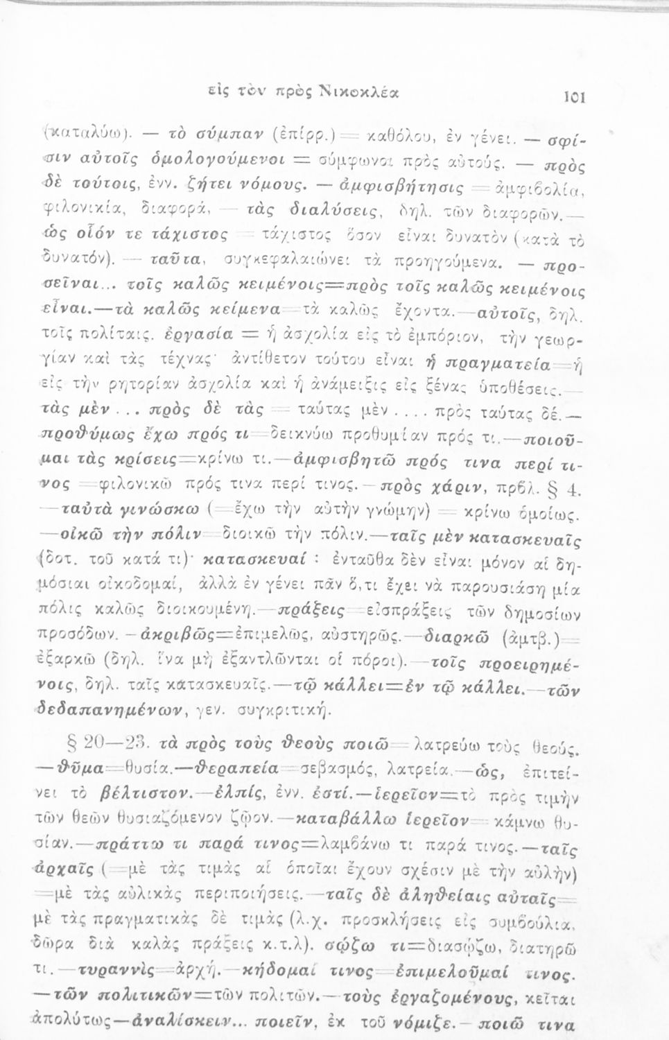 Μαθητικό βοήθημα Αρχαίων Ελληνικών για τους μαθητές της Ε΄ Οκταταξίου Γυμνασίου που περιλαμβάνει τους Λόγους του Ισοκράτη Προς Δημόνικον και Προς Νικοκλέα, μετάφραση, γραμματικά και συντακτικά σχόλια και ...