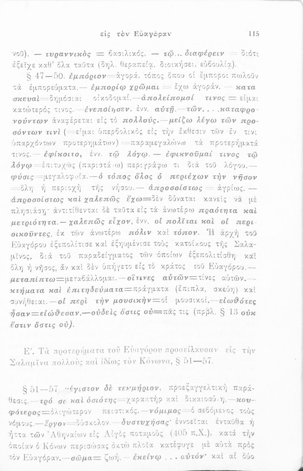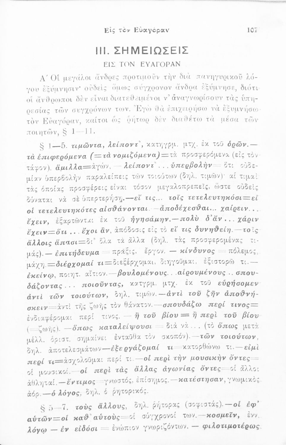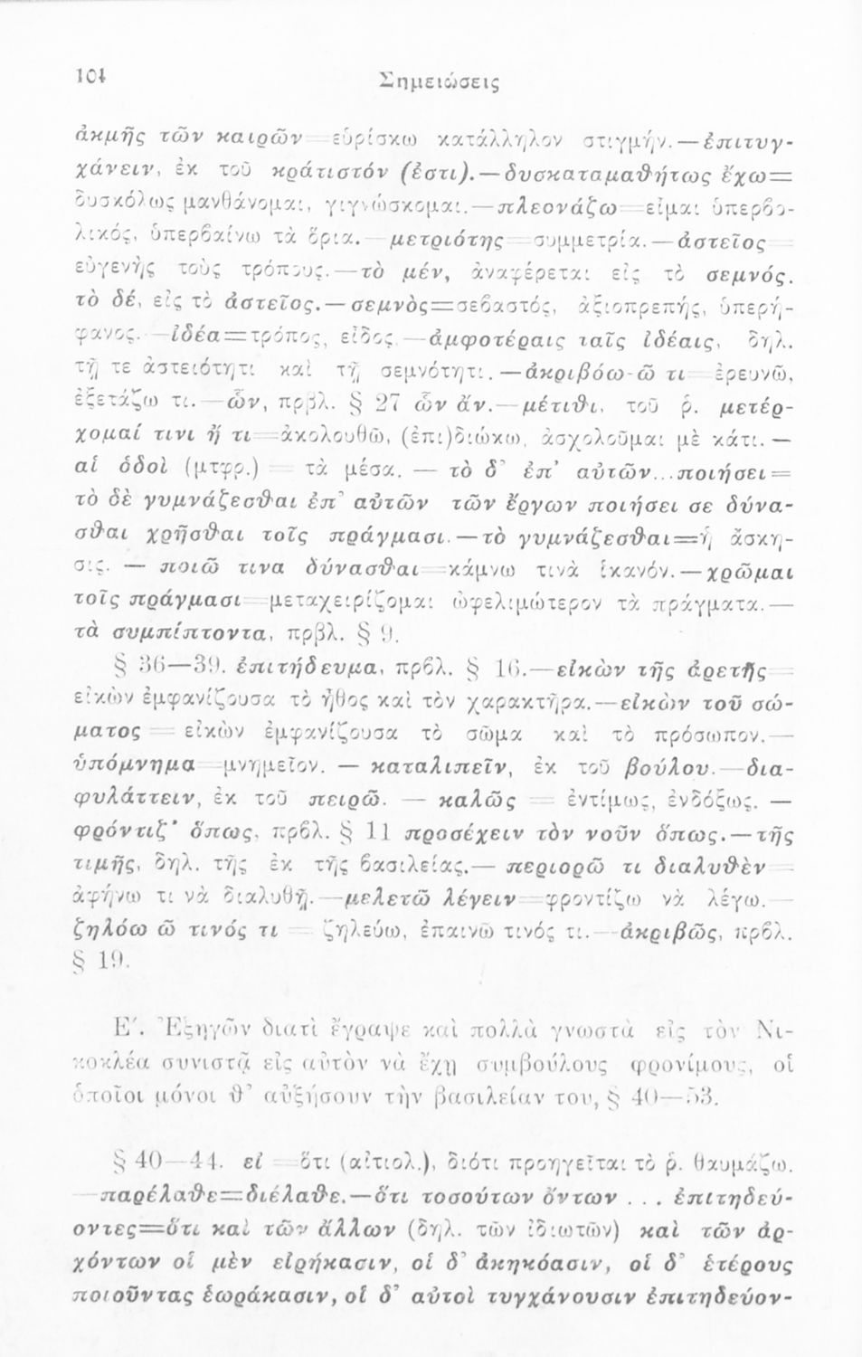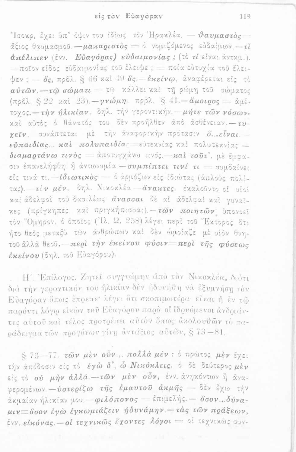 Μαθητικό βοήθημα Αρχαίων Ελληνικών Ε' Γυμνασίου που περιλαμβάνει μετάφραση των Λόγων του Ισοκράτη Προς Δημόνικον, Προς Νικοκλέα και Ευαγόρας, ερμηνευτικά, γραμματικά και συντακτικά σχόλια.