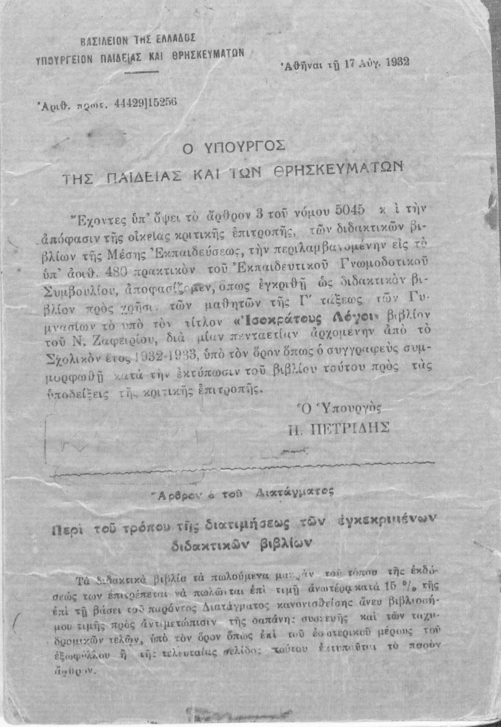 Εκδότης: Πέτρος Δημητράκος Α.Ε. Έτος έκδοσης: 1932 Τόπος έκδοσης: Αθήνα Έκδοση: 7η Υπουργική απόφαση / Σύμβαση: 44429/17-8-1932 |