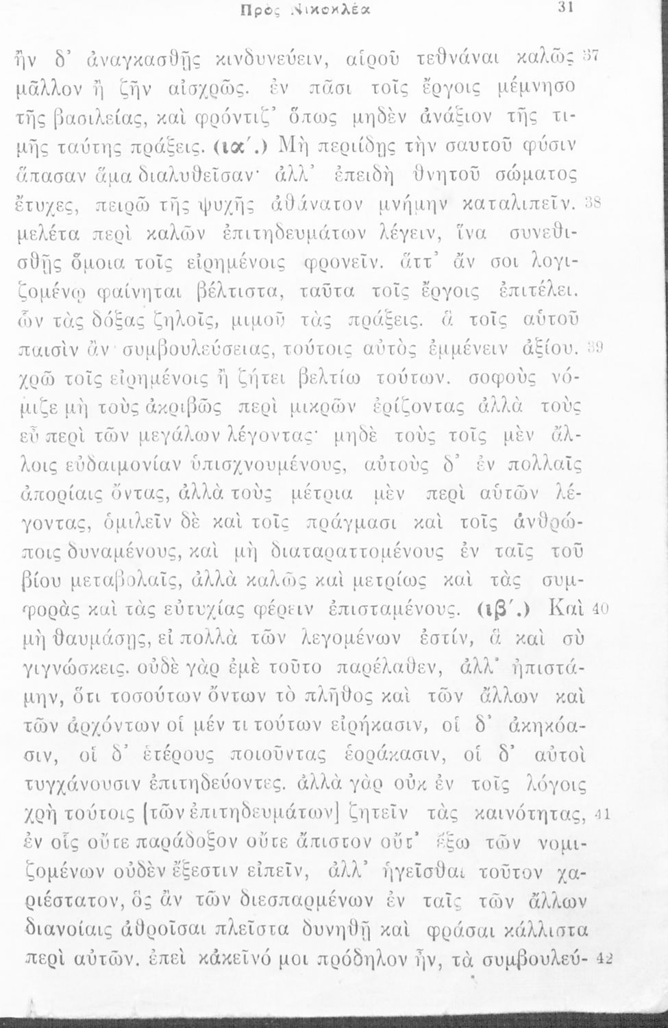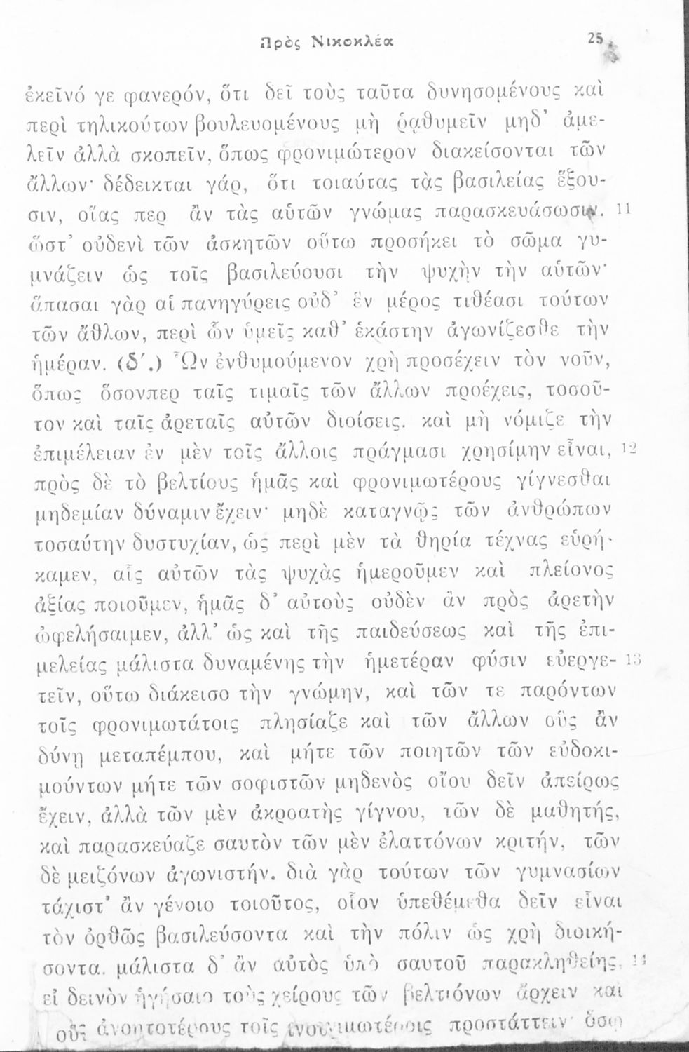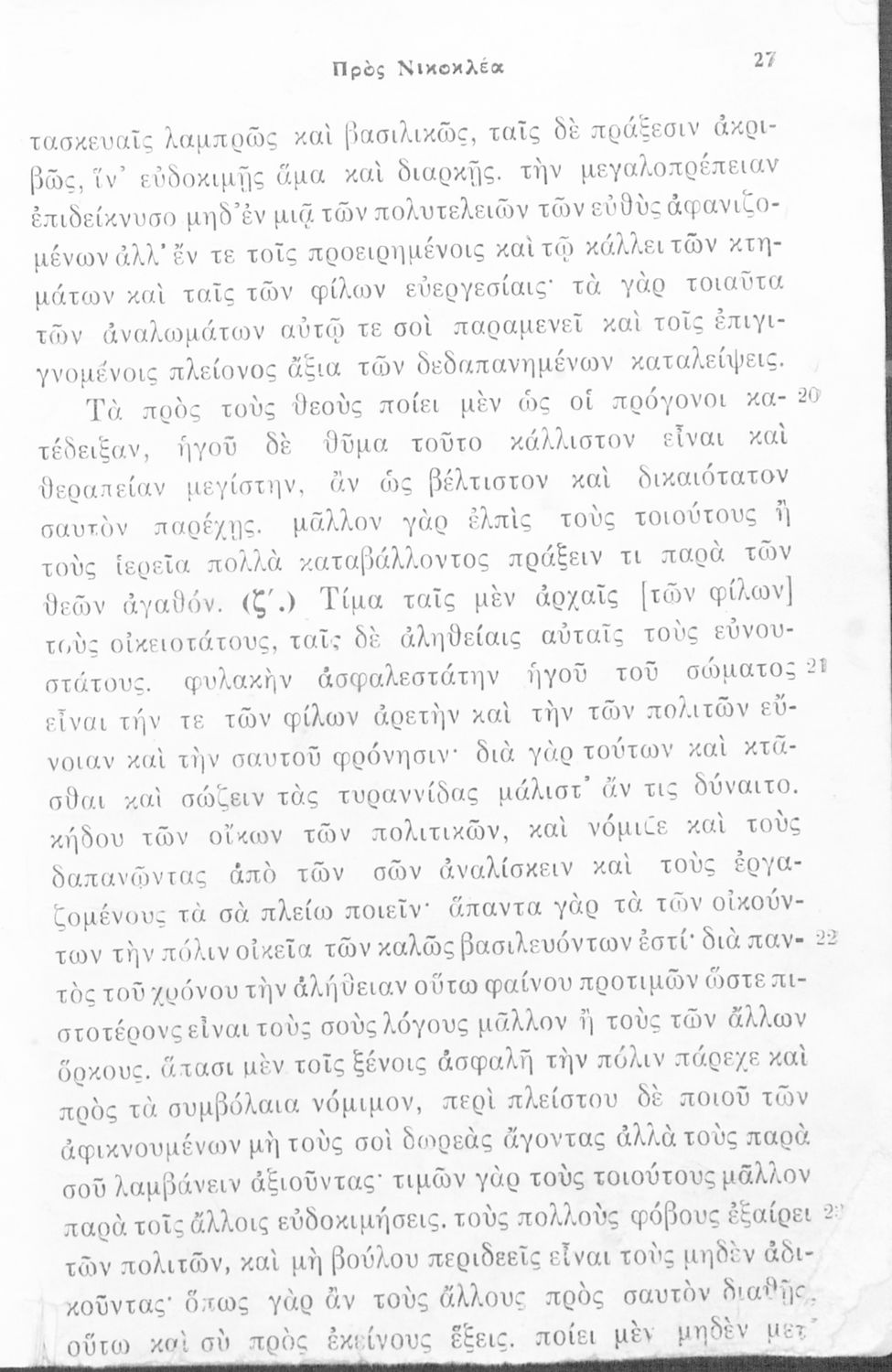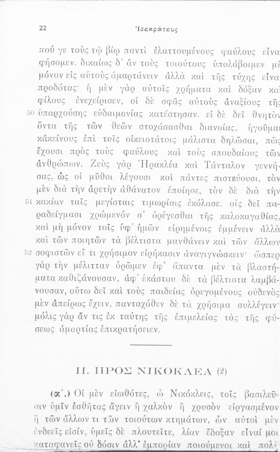 Μαθητικό βοήθημα Αρχαίων Ελληνικών για τους μαθητές της Ε΄ Οκταταξίου Γυμνασίου που περιλαμβάνει τους Λόγους του Ισοκράτη Προς Δημόνικον και Προς Νικοκλέα, μετάφραση, γραμματικά και συντακτικά σχόλια και ...