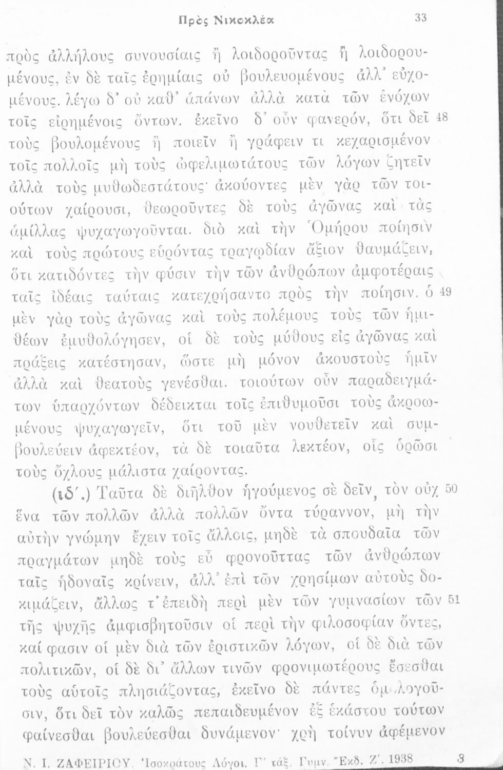 Ισοκράτης, Νικόλαος Ι. Ζαφειρίου (σχόλια)