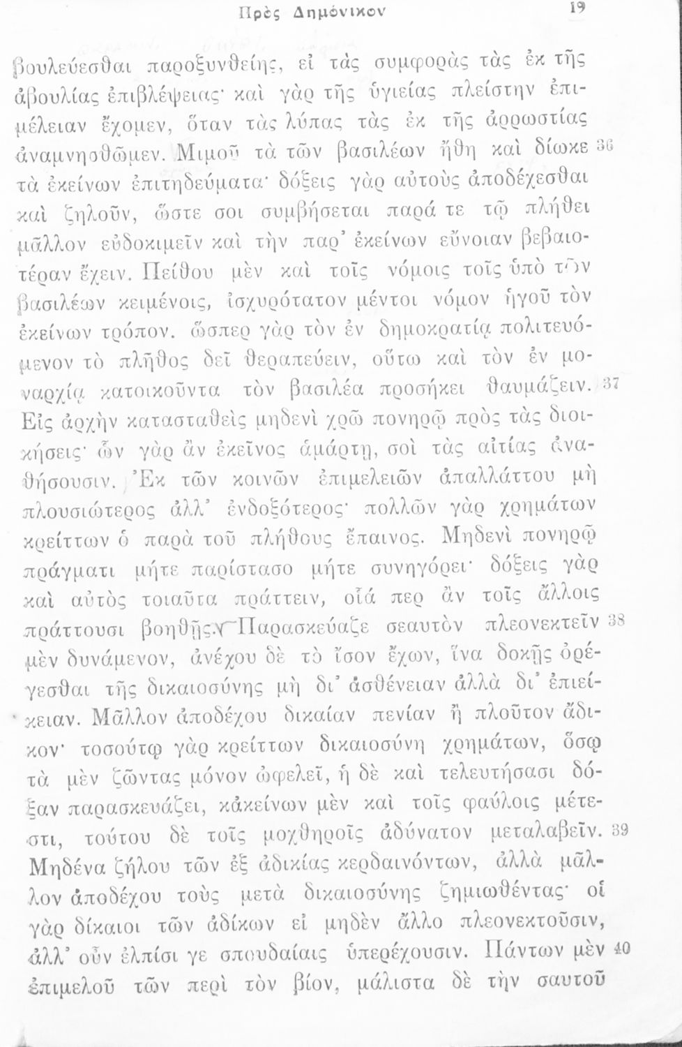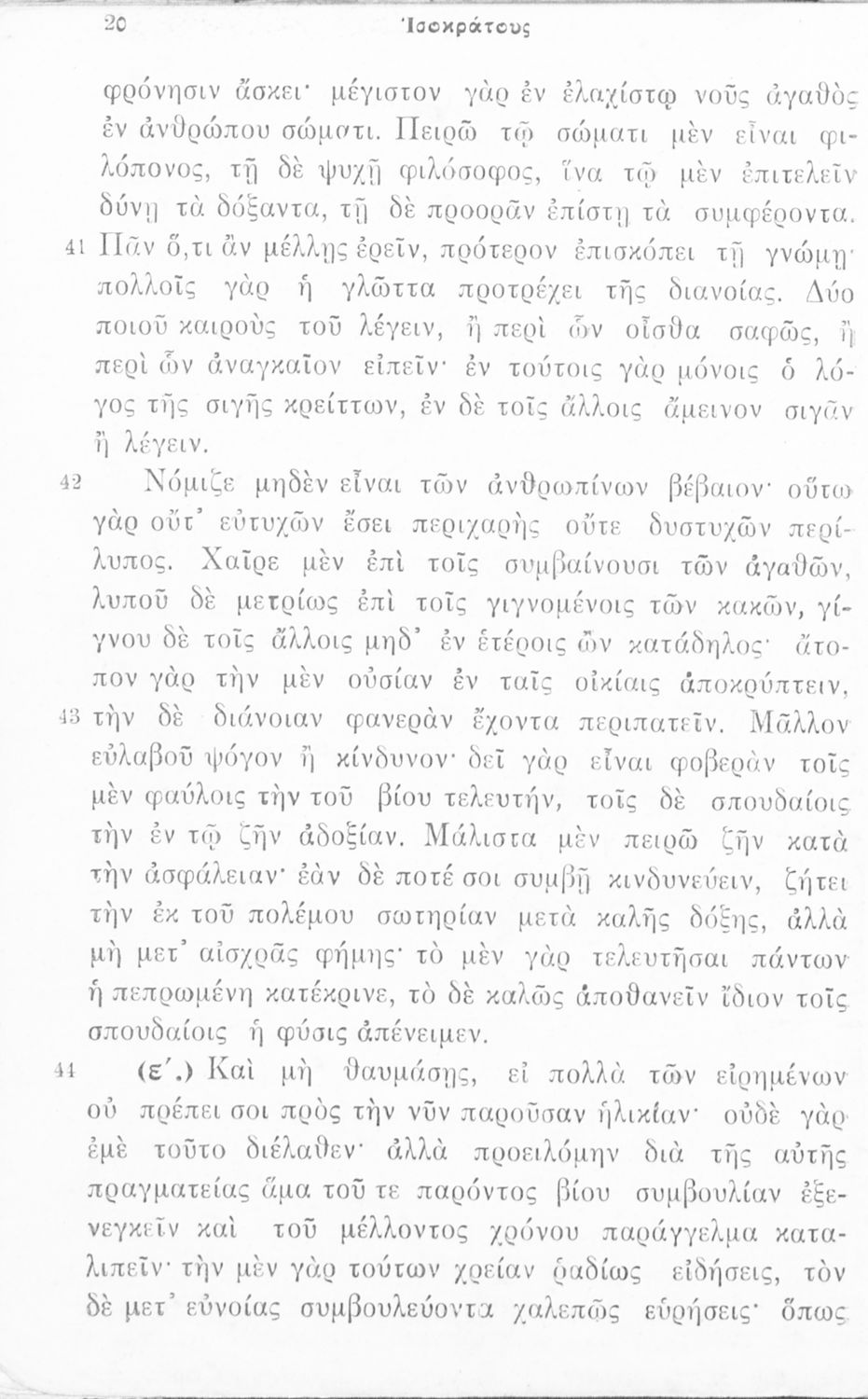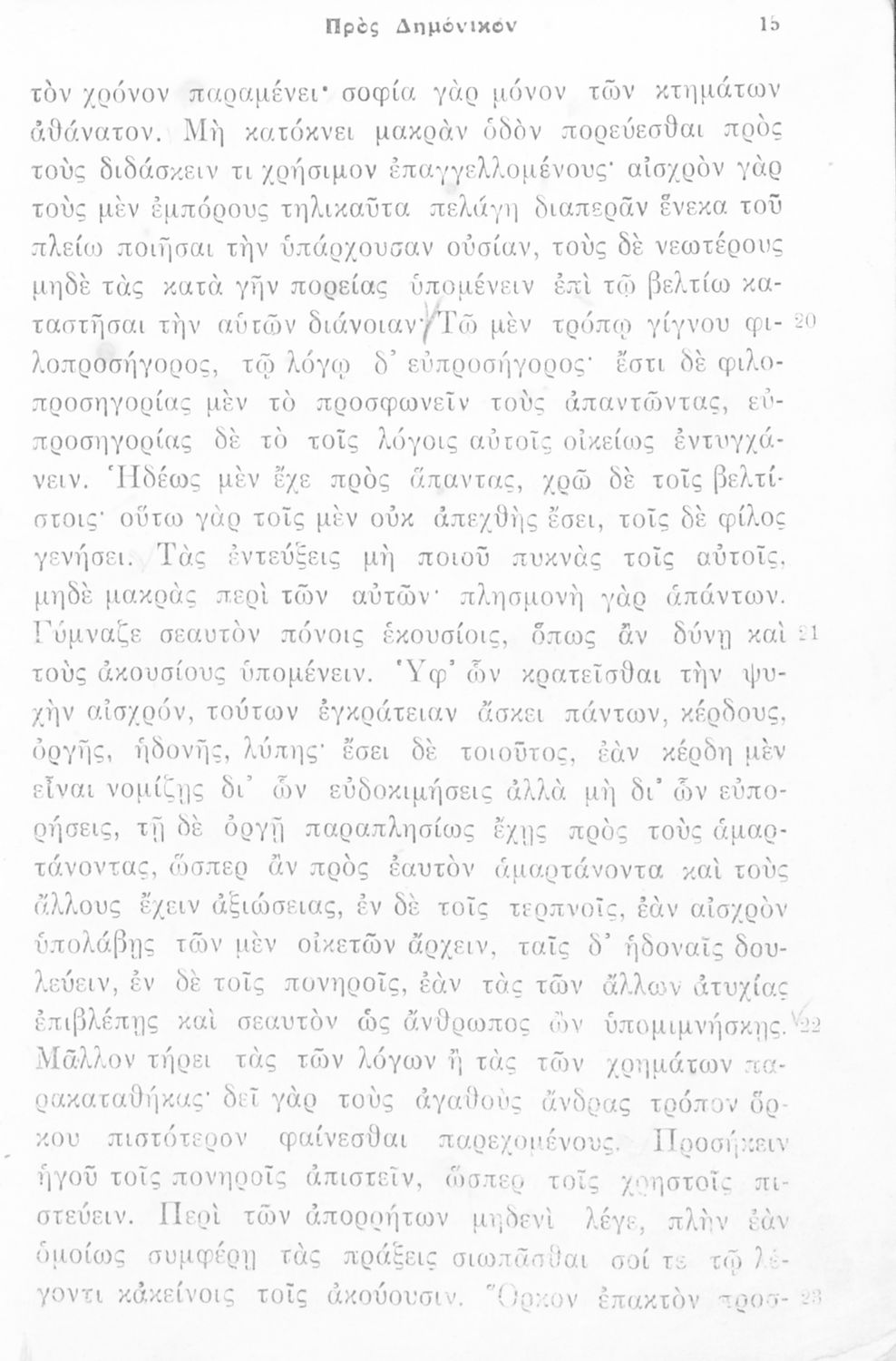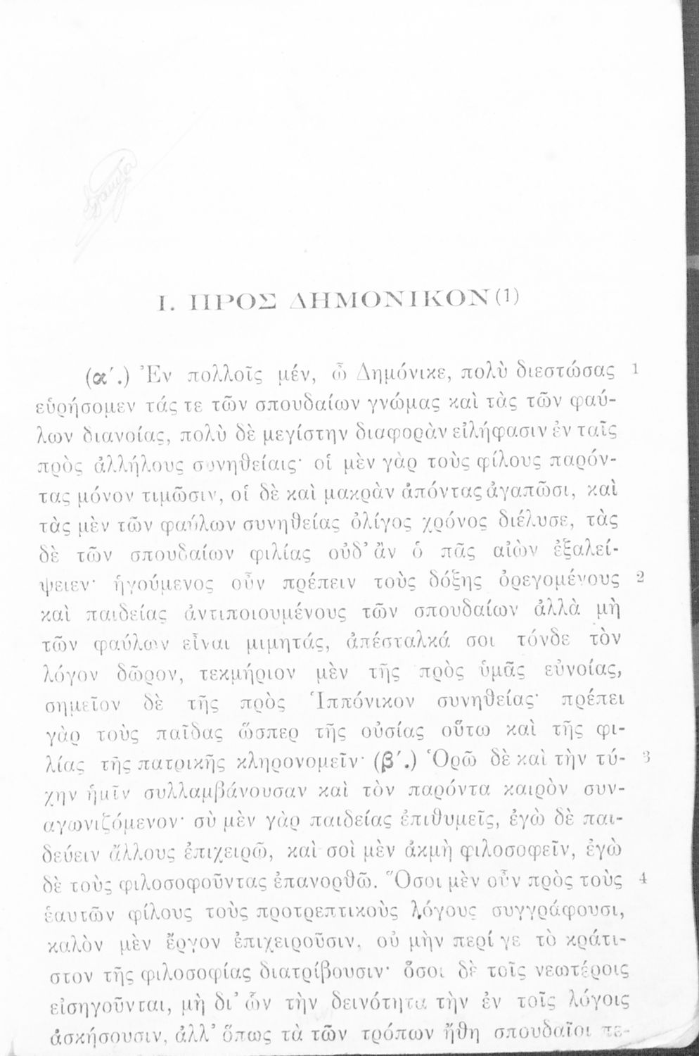 Σχολικό εγχειρίδιο Αρχαίων Ελληνικών Γ΄ Γυμνασίου που περιλαμβάνει εισαγωγή στη ζωή και το έργο του Ισοκράτη,τους Λόγους του Προς Δημόνικον, Προς Νικοκλέα, Περί ειρήνης και Ευαγόρας, και ερμηνευτικές σημειώσεις.