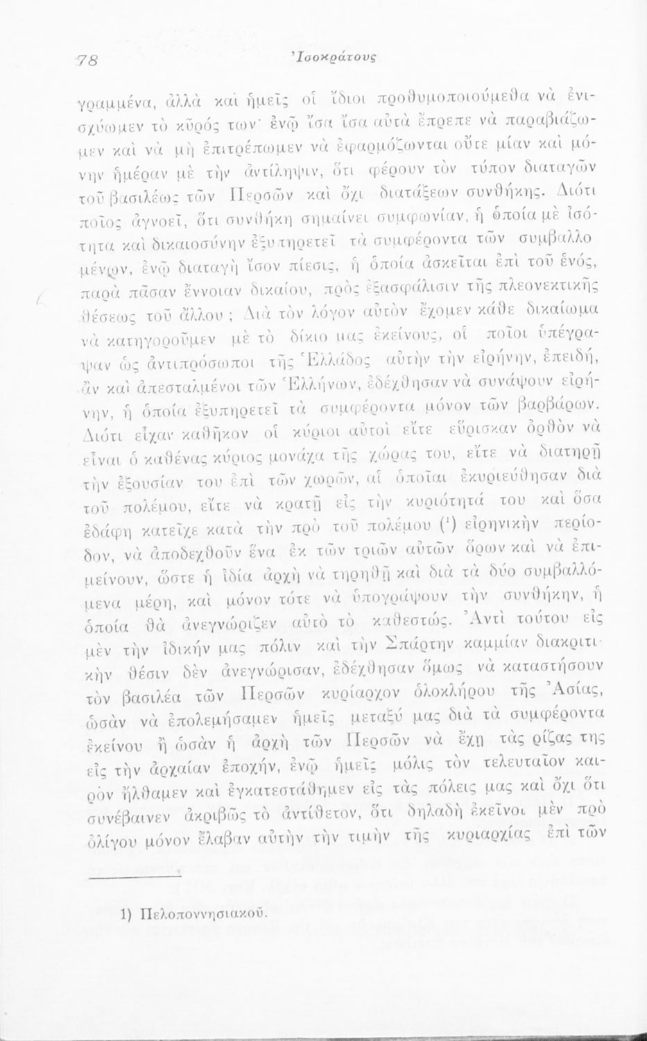 520 ## _aΜαθητικό βοήθημα Αρχαίων Ελληνικών που περιλαμβάνει μετάφραση του Λόγου του Ισοκράτη Πανηγυρικός και ερμηνευτικές σημειώσεις.