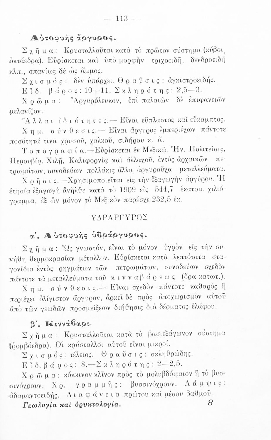 Τίτλος: Γεωλογία και Ορυκτολογία προς χρήσιν της Δ΄ τάξεως των Γυμνασίων