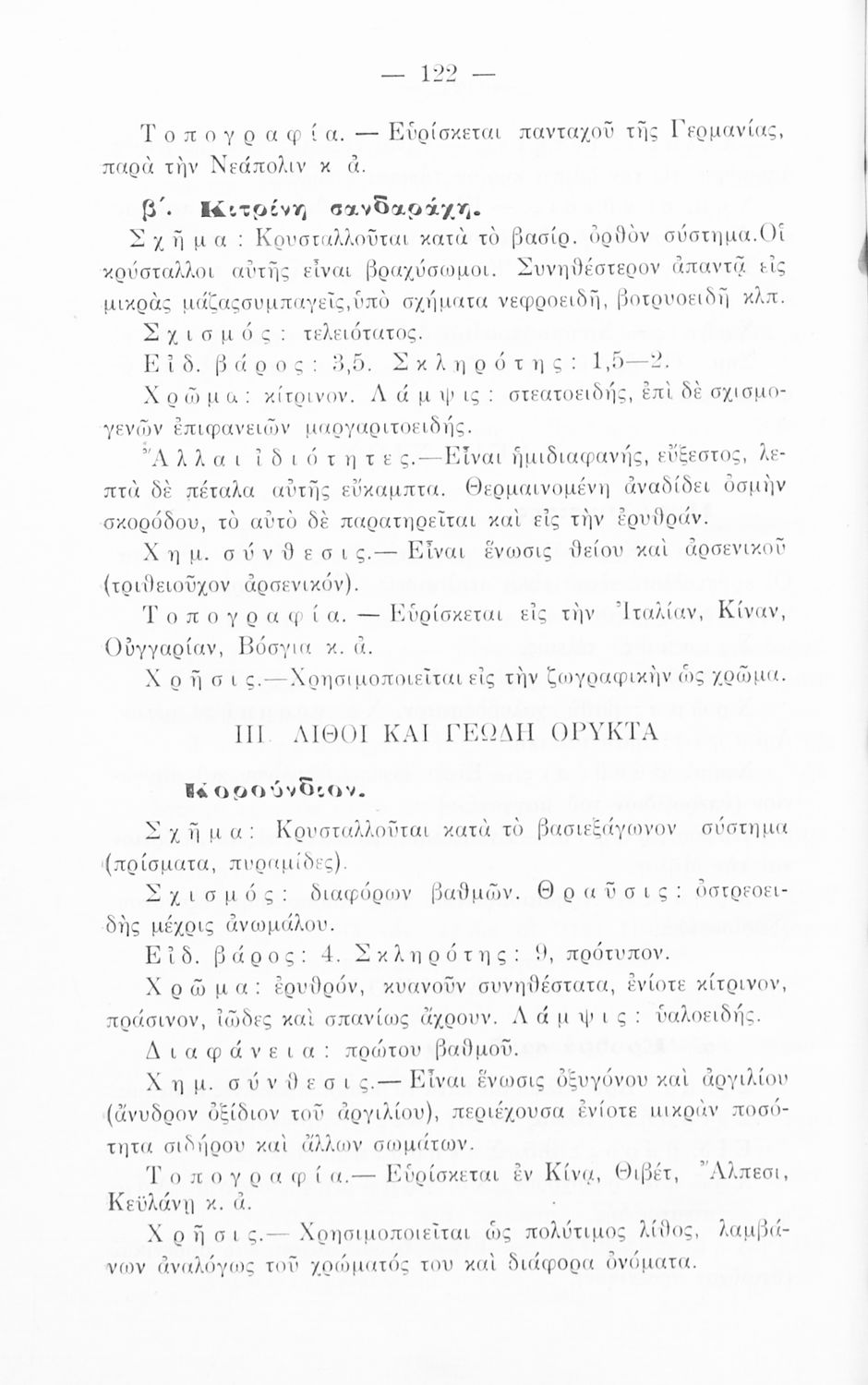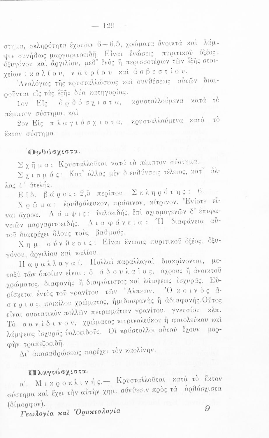 Τίτλος: Γεωλογία και Ορυκτολογία προς χρήσιν της Δ΄ τάξεως των Γυμνασίων