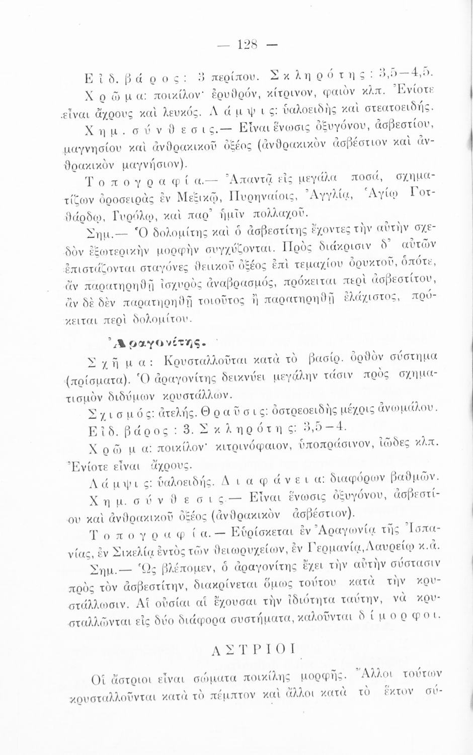 Βιβλίο Γεωλογίας/Ορυκτολογίας για την Δ΄ τάξη των Εξαταξίων Γυμνασίων που παρουσιάζει τα ορυκτά με βάση την κλάση στην οποία ανήκουν. Το τμήμα της γεωλογίας εστιάζει στους γεωλογικούς αιώνες, Ο συγγραφέας ήταν