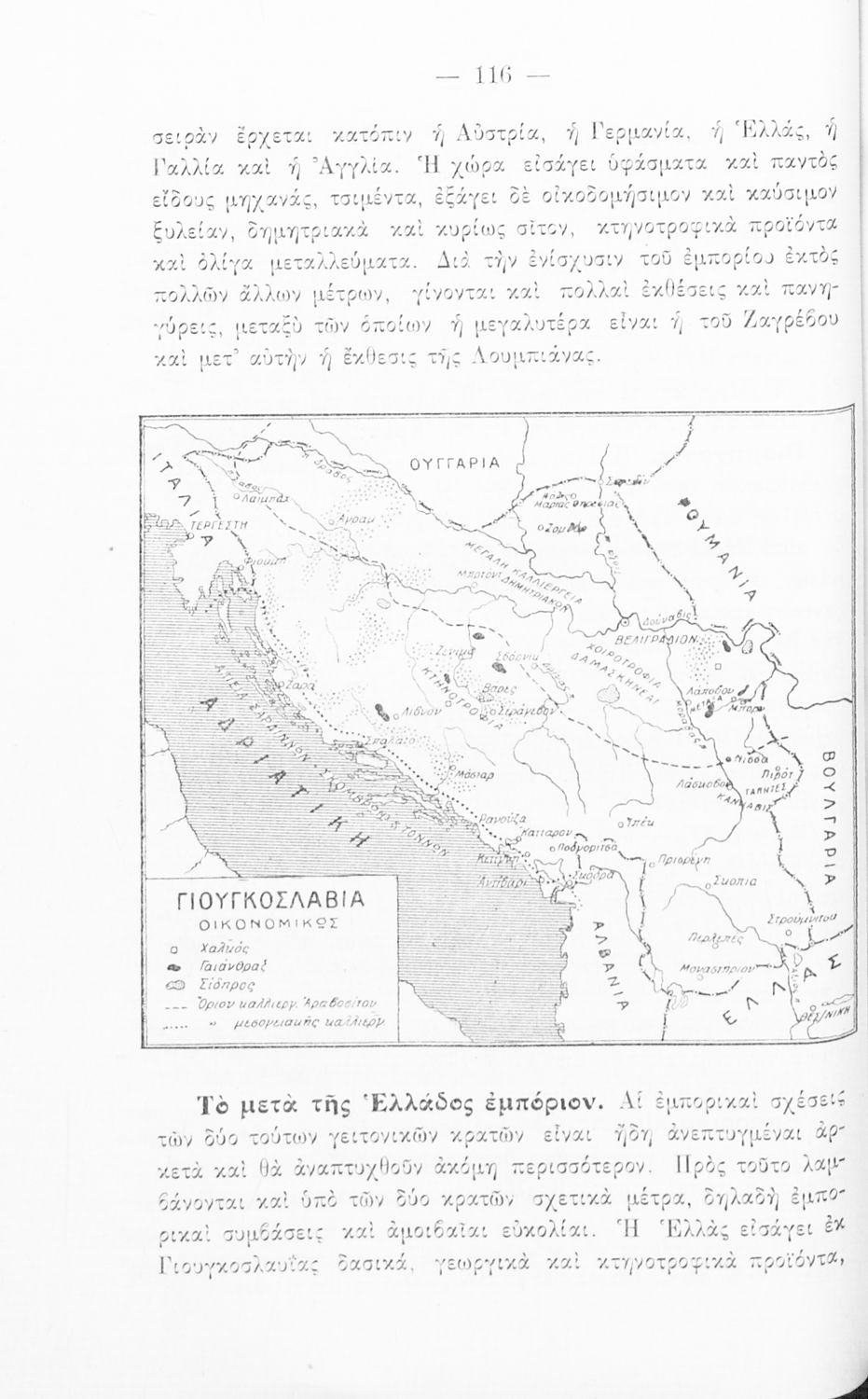 Πρόκειται για σχολικό εγχειρίδιο το οποίο μέσα από πλούσια εικονογράφηση προοριζόταν για τη διδασκαλία του μαθήματος της οικονομικής Γεωγραφίας της Ελλάδας. Φέρει την υπογραφή του συγγραφέα και τη σφραγίδα του εκδότη.
