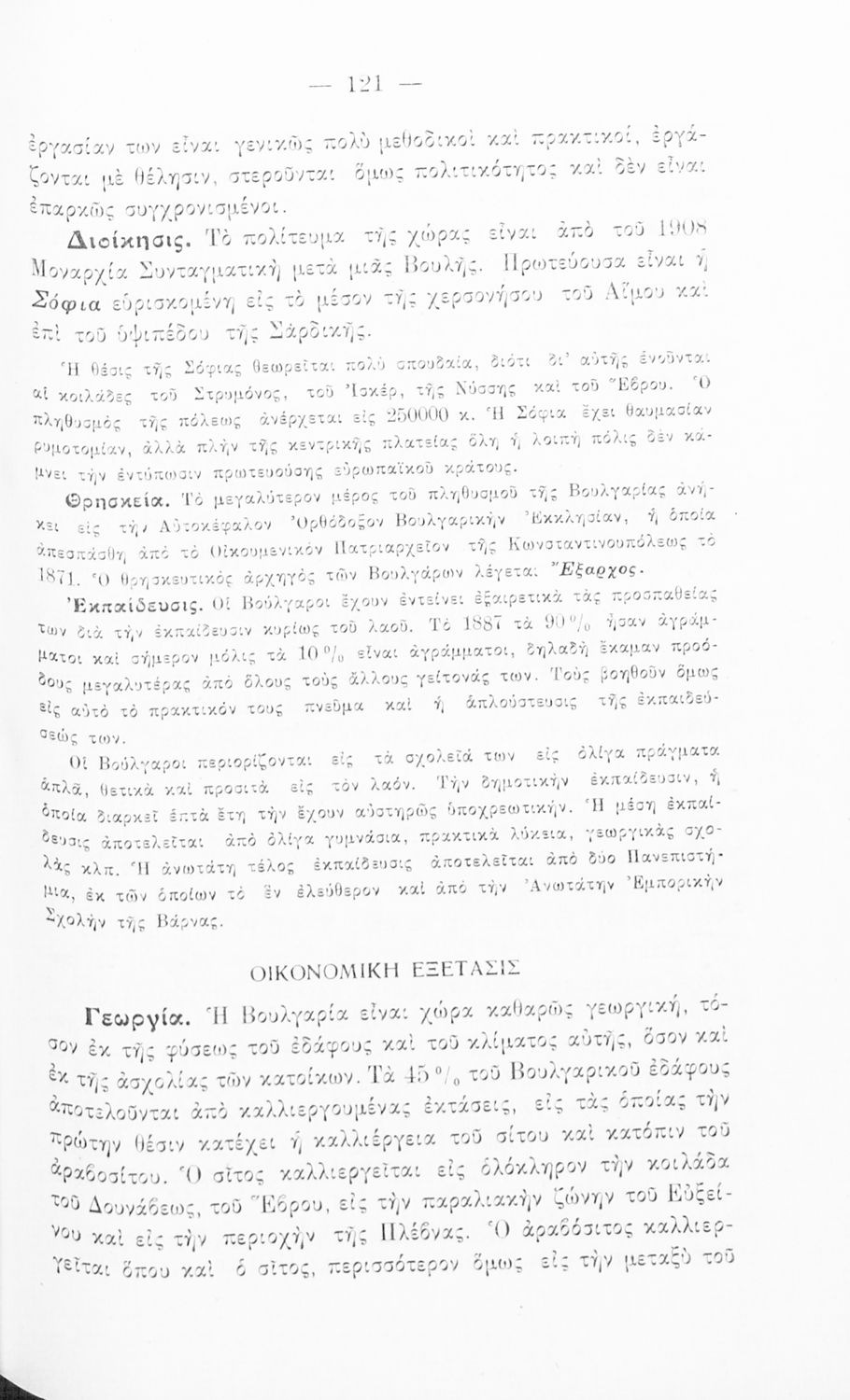 Παρουσίαση περιεχομένου: Πρόκειται για σχολικό εγχειρίδιο το οποίο μέσα από πλούσια εικονογράφηση προοριζόταν για τη διδασκαλία του μαθήματος της οικονομικής Γεωγραφίας της Ελλάδας. Φέρει την υπογραφή του συγγραφέα και τη σφραγίδα του εκδότη.