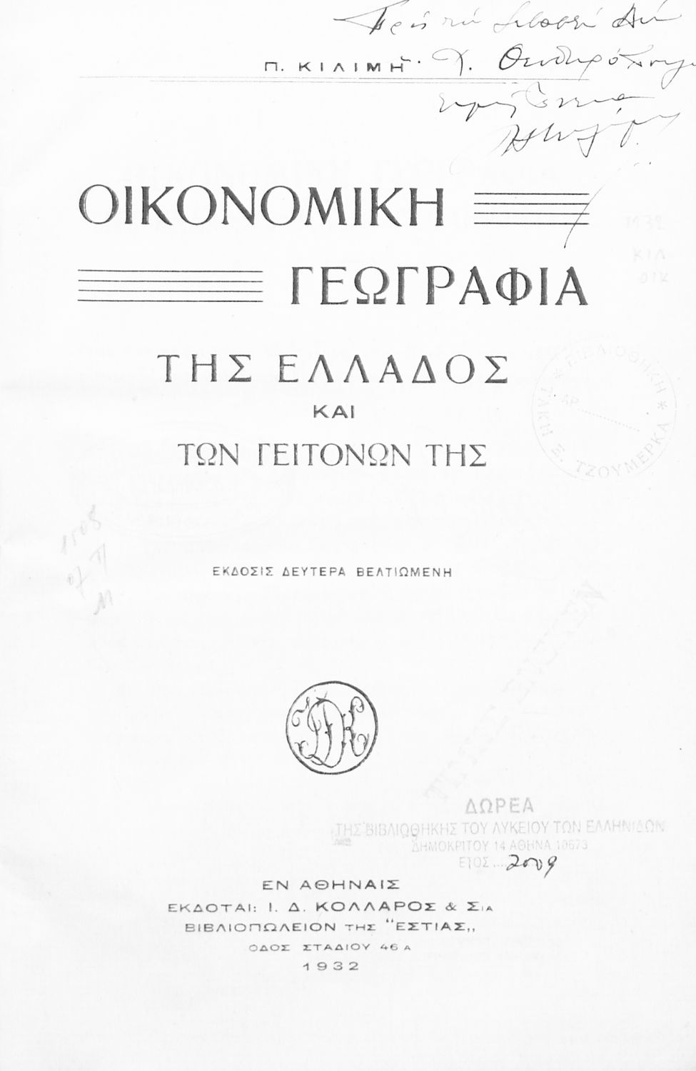 Κωδικός βιβλιοθήκης: 1932 ΚΙΛ ΟΙΚ
