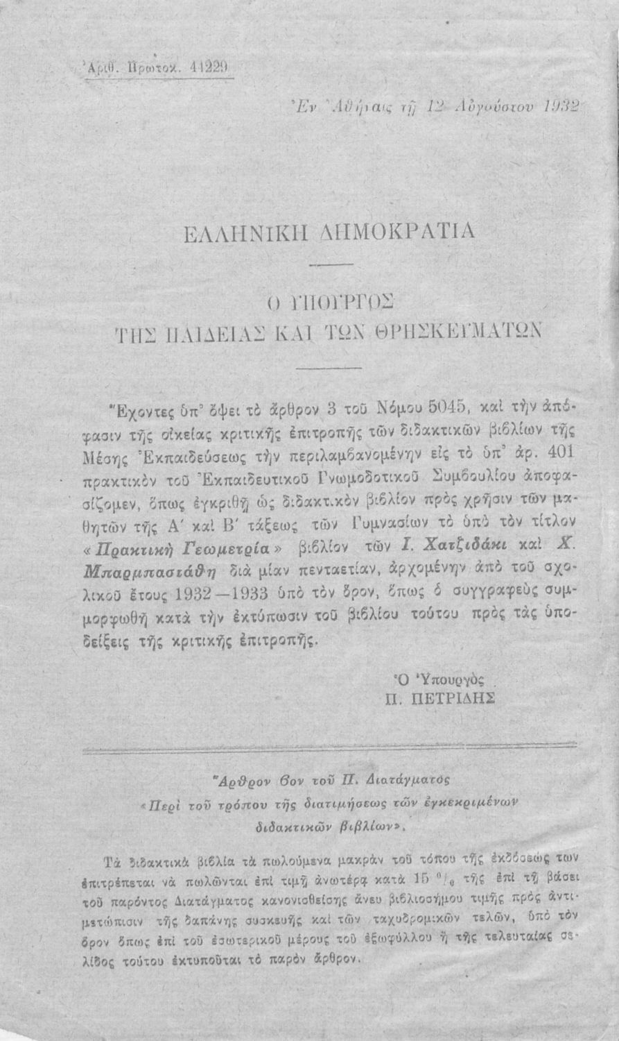 Υπουργική απόφαση / Σύμβαση: 44429/9-9-1932