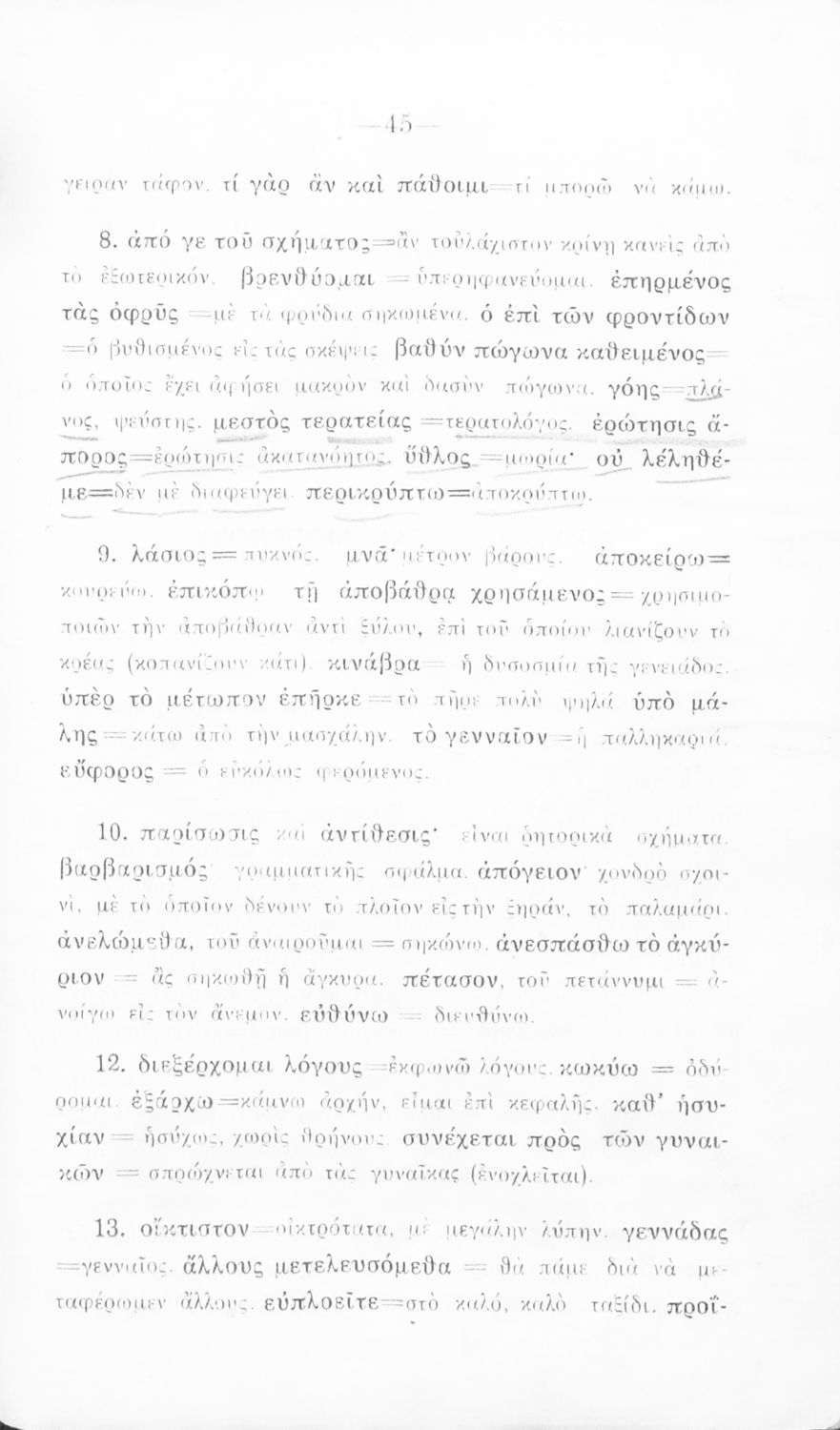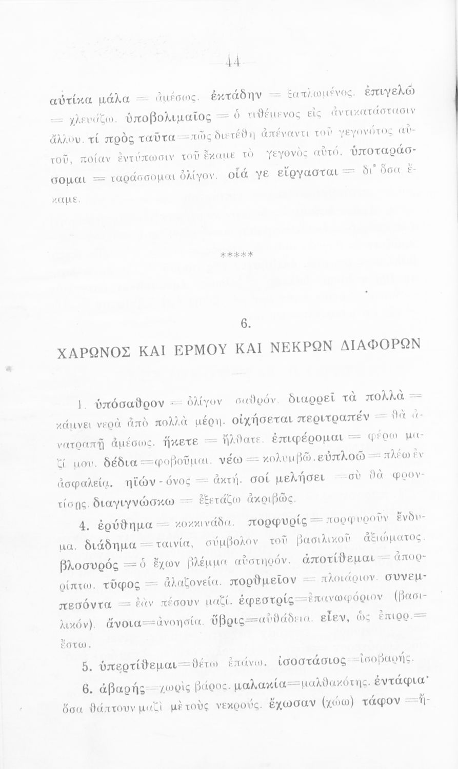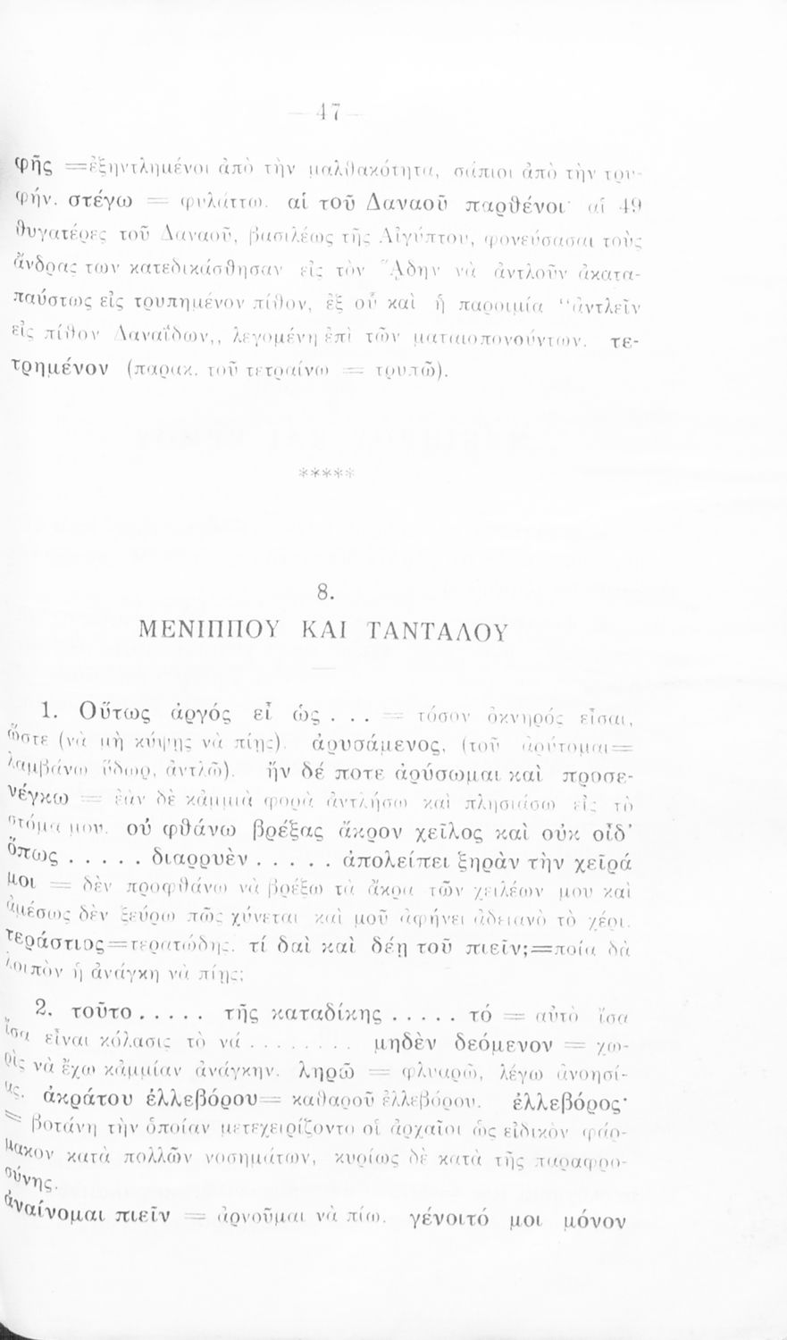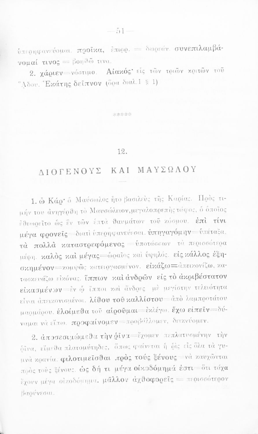 Σχολικό εγχειρίδιο Αρχαίων Ελληνικών για την Α΄ τάξη των Ημιγυμνασίων και Εξαταξίων Γυμνασίων που περιέχει αποσπάσματα από τους Νεκρικούς Διαλόγους του Λουκιανού και ετυμολογικές και πραγματολογικές σημειώσεις.