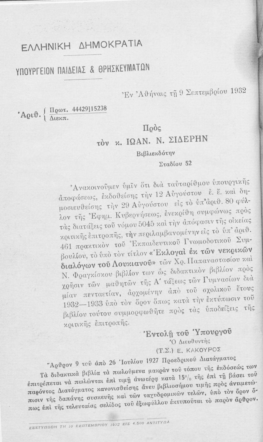 Υπουργική απόφαση / Σύμβαση: 44429/9-9-1932