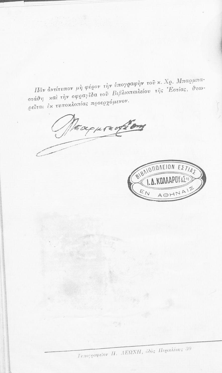 Εντοπισμός πρωτοτύπου: Ελληνικό Λογοτεχνικό και Ιστορικό Αρχείο Κωδικός βιβλιοθήκης: 1932 ΛΟΥ |