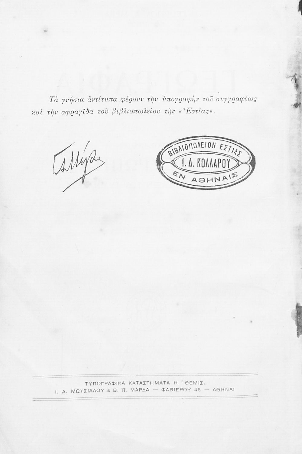 Εντοπισμός πρωτοτύπου: Ελληνικό Λογοτεχνικό και Ιστορικό Αρχείο Κωδικός βιβλιοθήκης: 1932 ΜΕΓ |