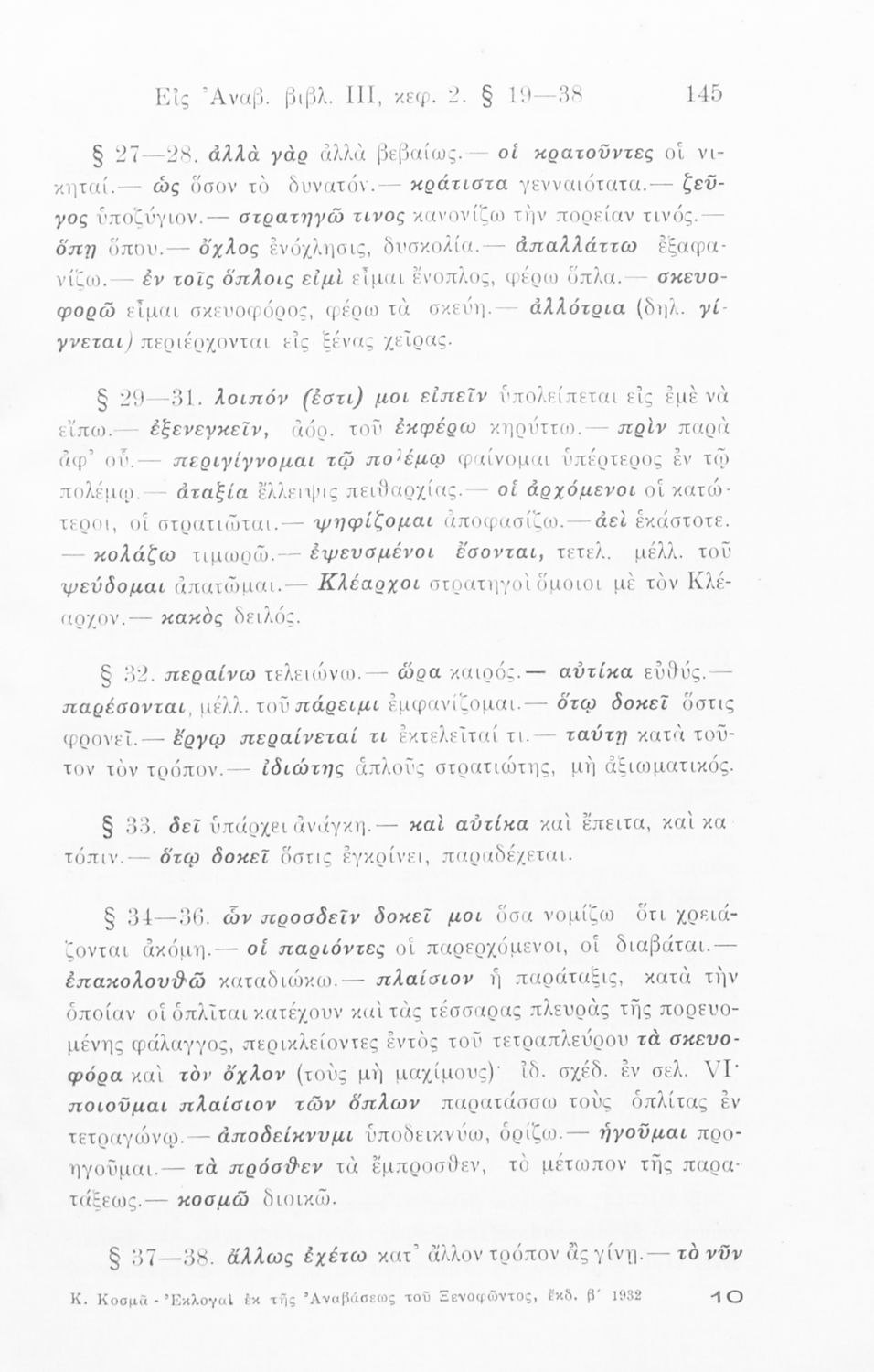 Ξενοφών, Κυριάκος Κοσμάς (σχόλια)