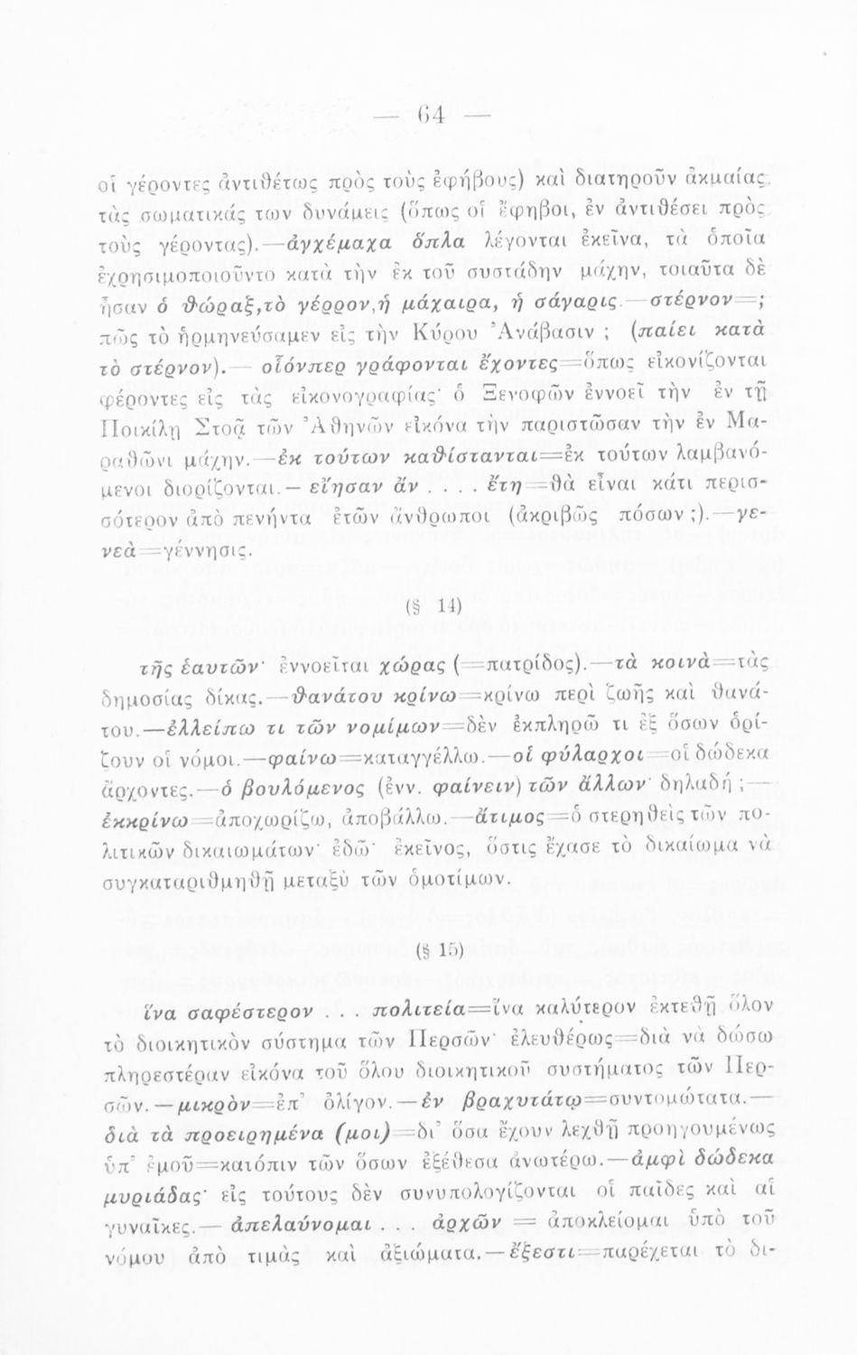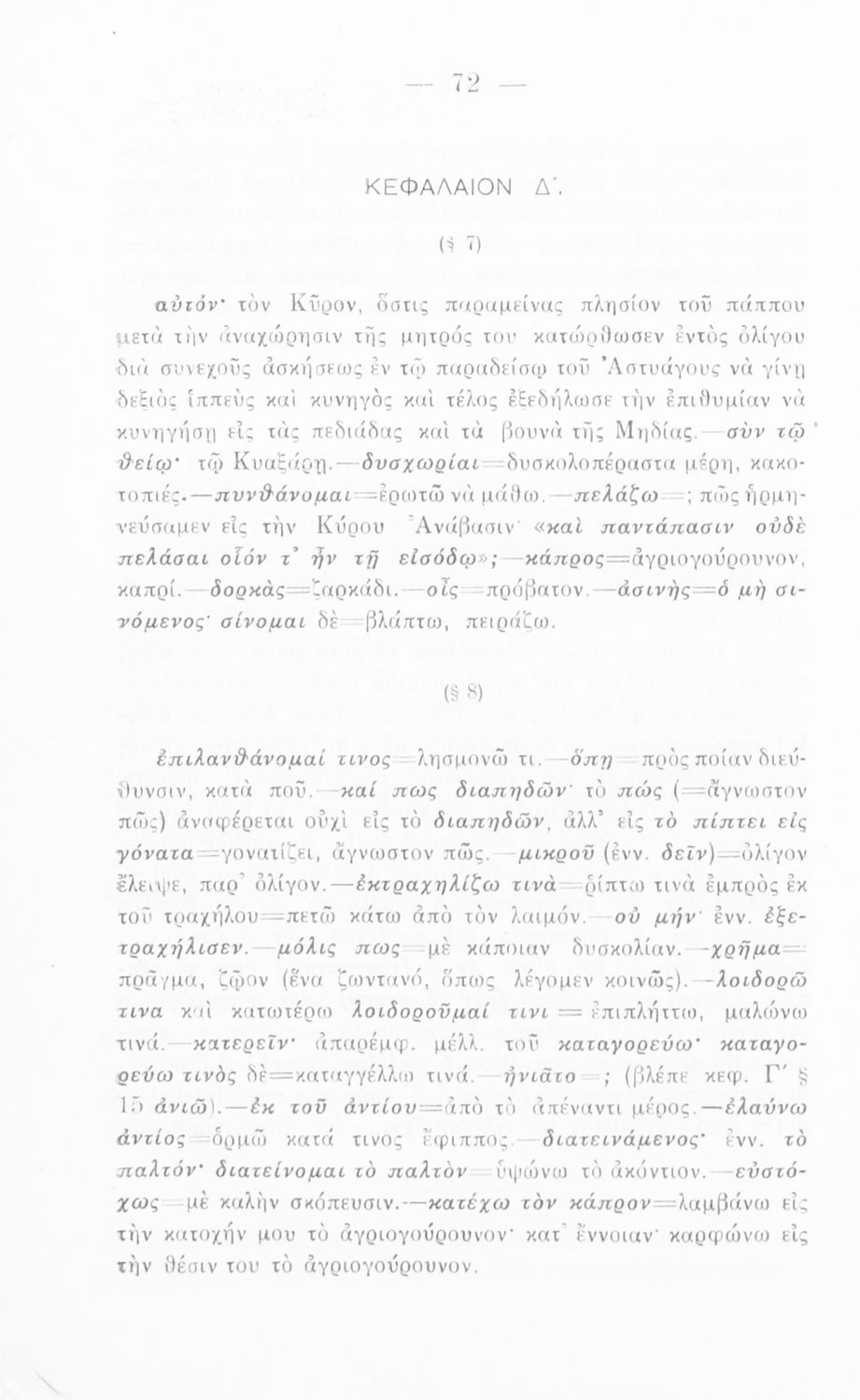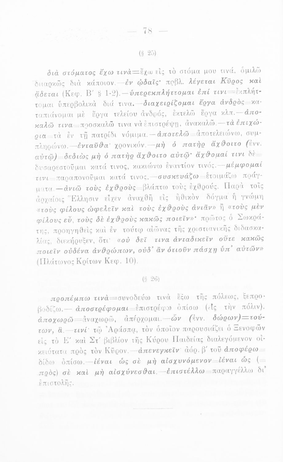 Σχολικό εγχειρίδιο Αρχαίων Ελληνικών για την Γ΄ Εξαταξίου Γυμνασίου που περιλαμβάνει εισαγωγή στη ζωή και το έργο του Ξενοφώντα, αποσπάσματα από το Κύρου Παιδεία, ερμηνευτικές σημειώσεις, σκίτσα που απεικονίζουν πολεμικά όπλα της εποχής και χωρογραφικό πίνακα της περιοχής.